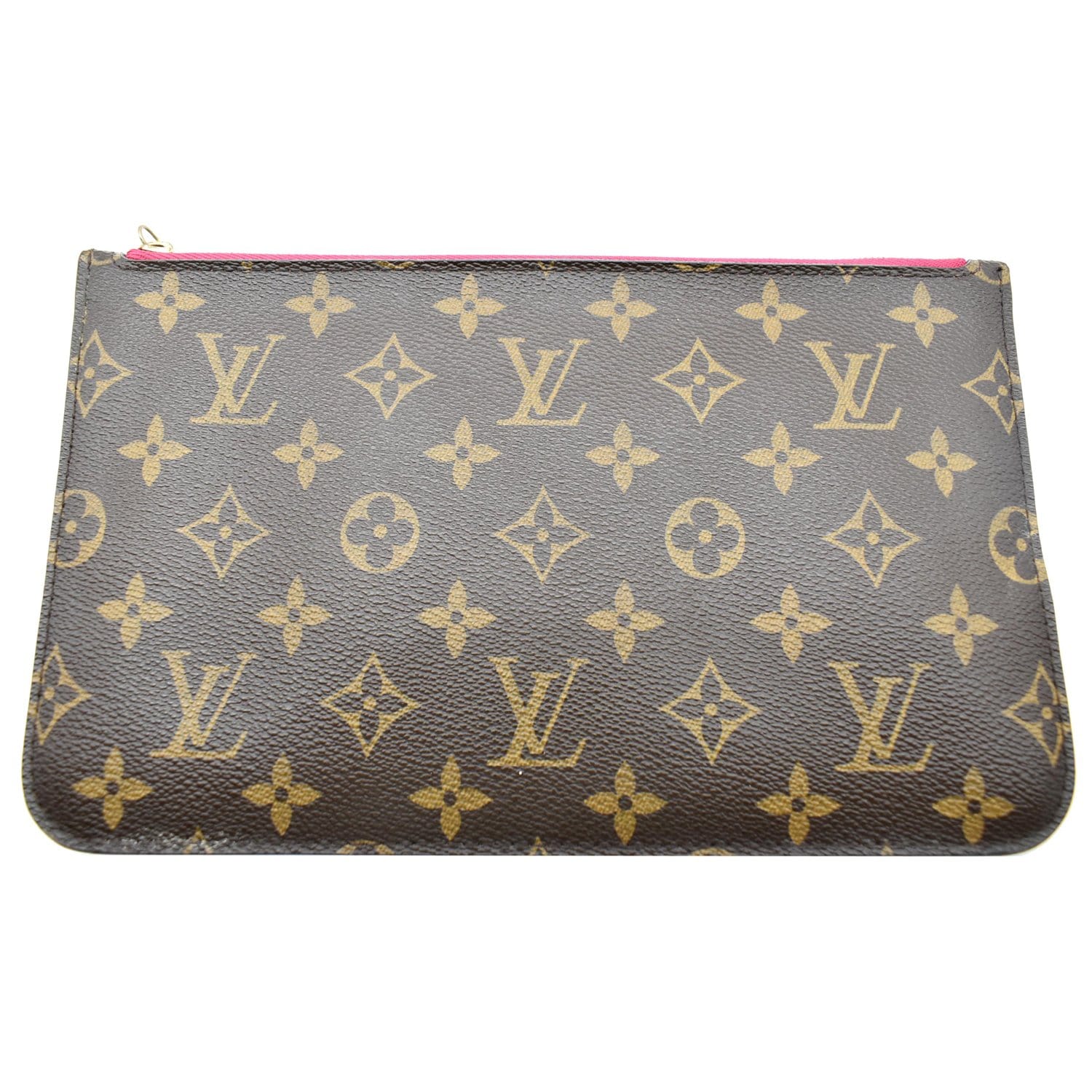 LOUIS VUITTON Neverfull MM Monogram Canvas Pochette Wristlet Pouch Brown