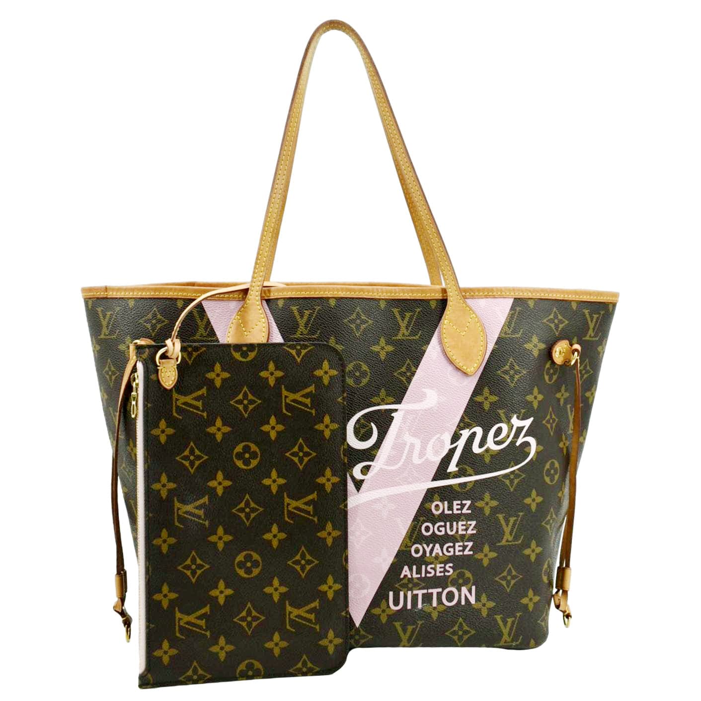 LOUIS VUITTON Neverfull Saint Tropez Monogram Canvas Tote Bag Rose Ballerine