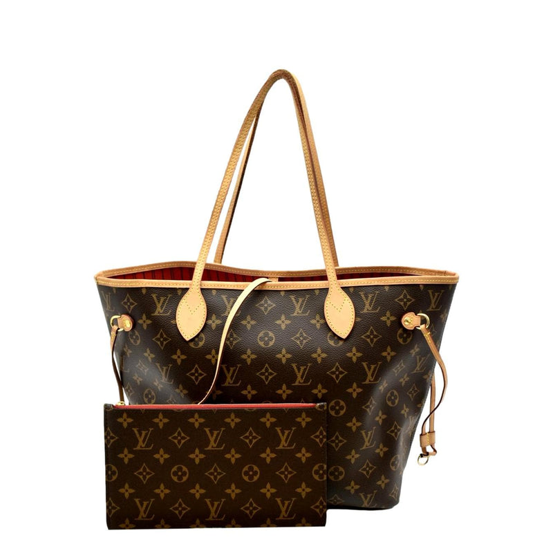 LOUIS VUITTON Neverfull MM Monogram Canvas Tote Bag Brown/Red