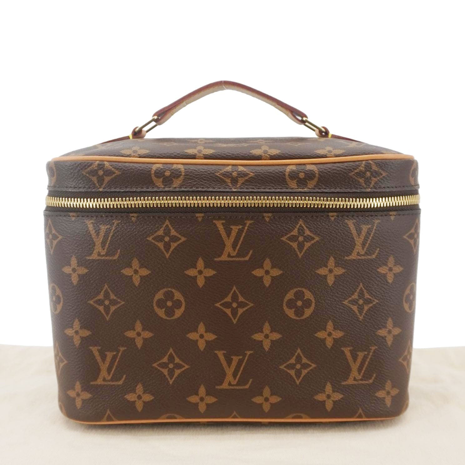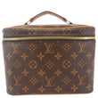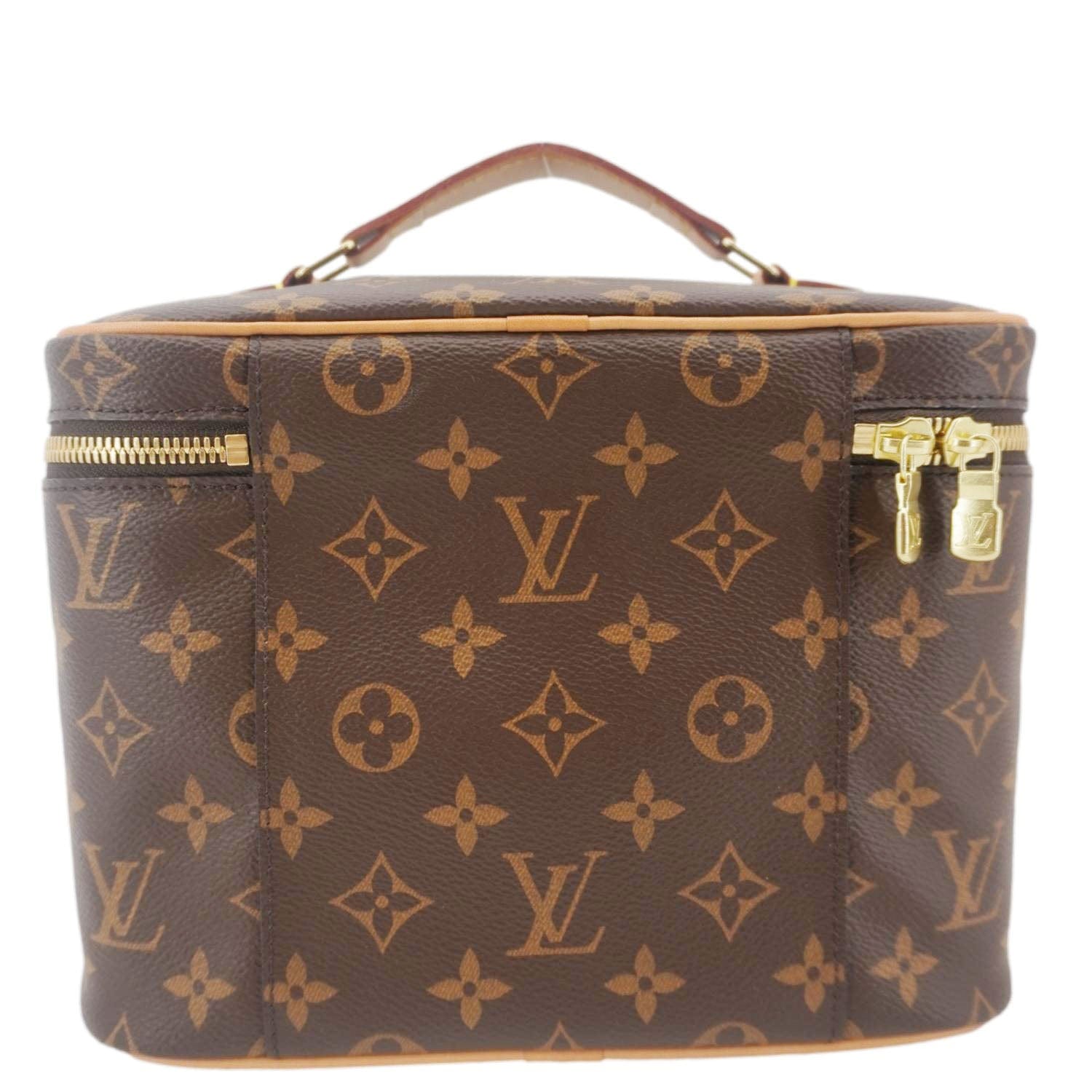 The Louis Vuitton Nice BB Vanity Case in Monogram canvas is a compact, structured piece ideal for toiletries or as a stylish mini bag. It has gold-tone hardware and a top handle, and it’s perfect for travel or everyday use.