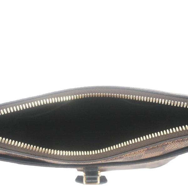 - Material: Damier Ebene with black leather
