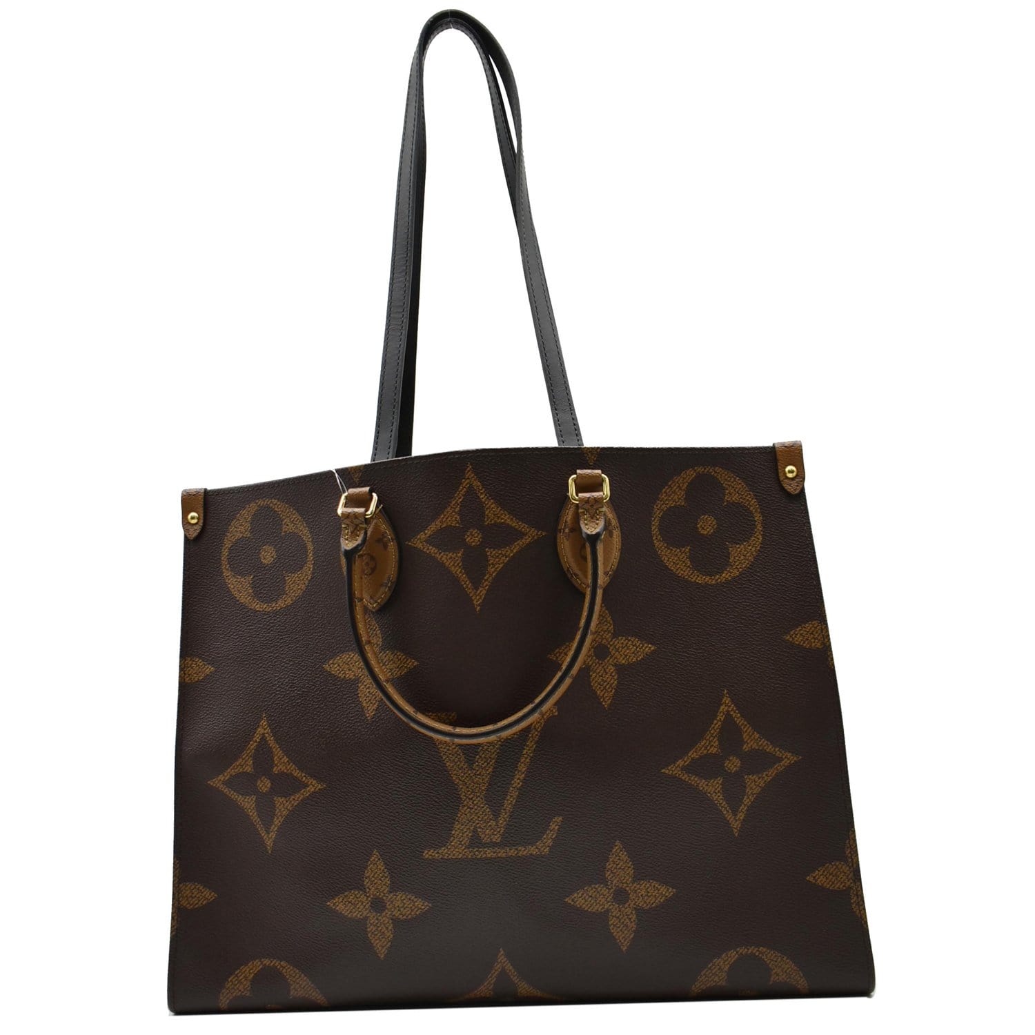 Onthego GM Reverse Monogram Giant Canvas Shoulder Bag Brown