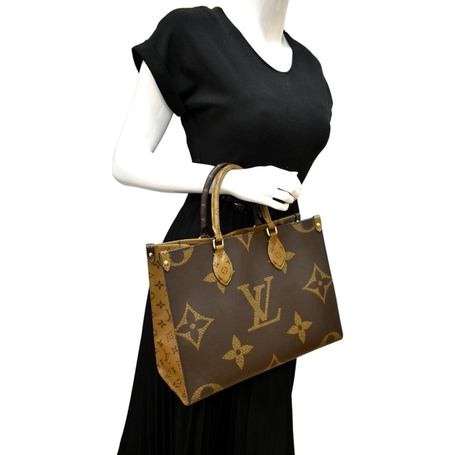 LOUIS VUITTON Onthego MM Giant Monogram Reverse Canvas Tote Shoulder Bag Brown