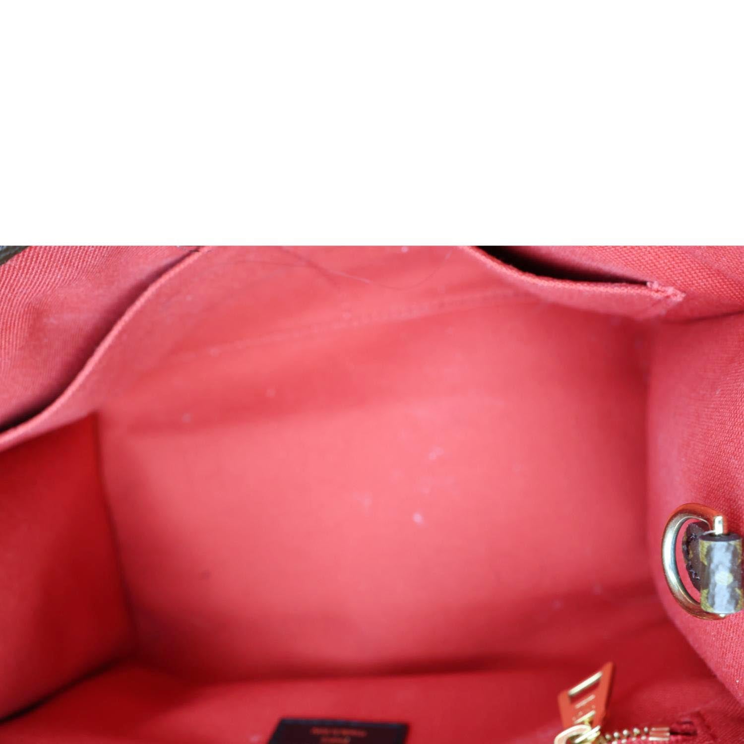 Excellent—The Item is in excellent condition with minimal signs on the canvas. Its gold-colored hardware is in excellent condition. The interior has some white marks. This bag does not have any unpleasant smell.