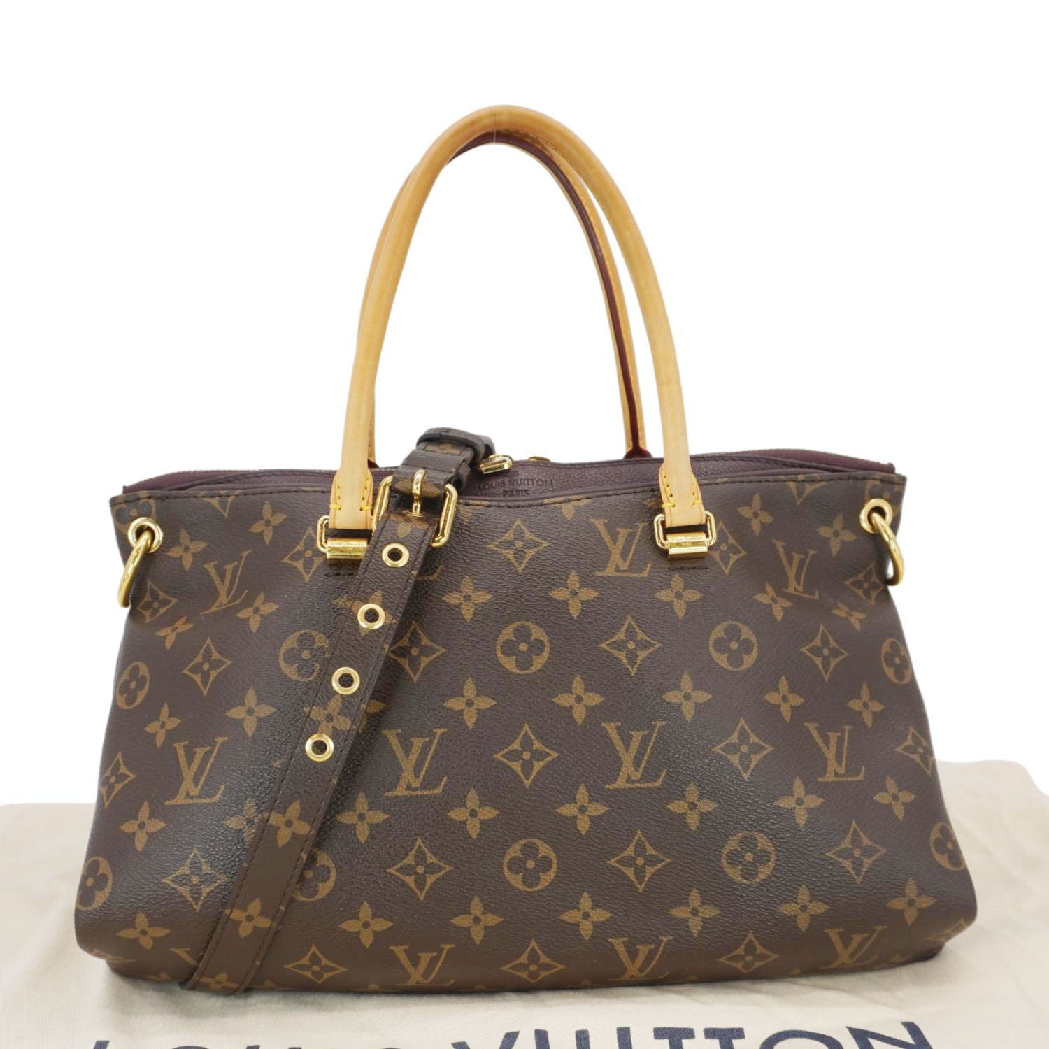 The Louis Vuitton Pallas MM Shoulder Bag in brown Monogram canvas blends classic elegance with functionality. Featuring leather accents, gold-tone hardware, and a spacious interior, it's a versatile companion for both work and leisure.