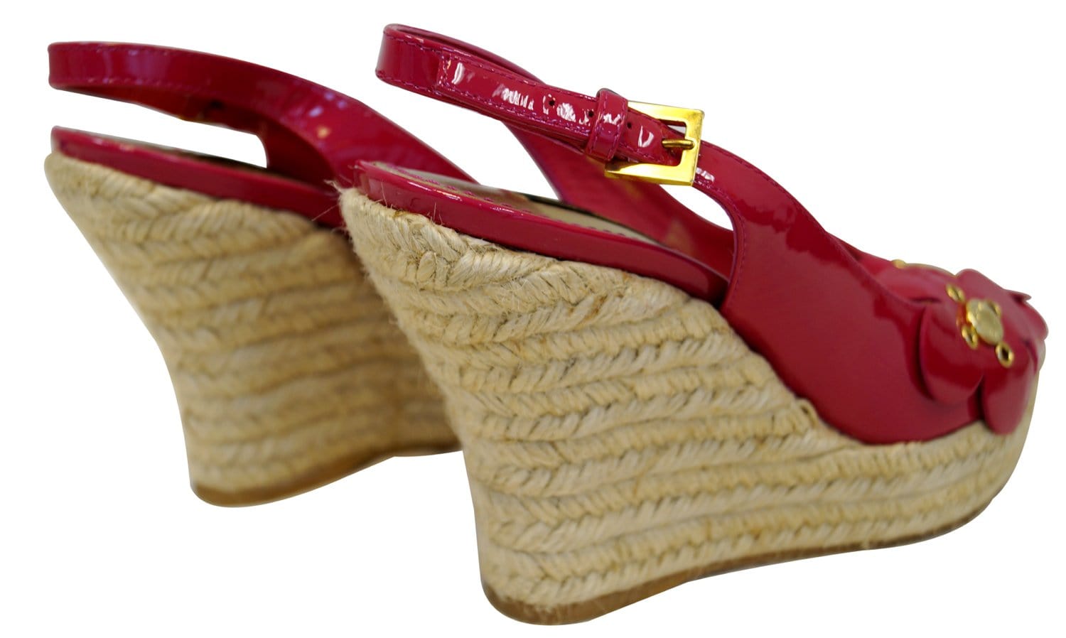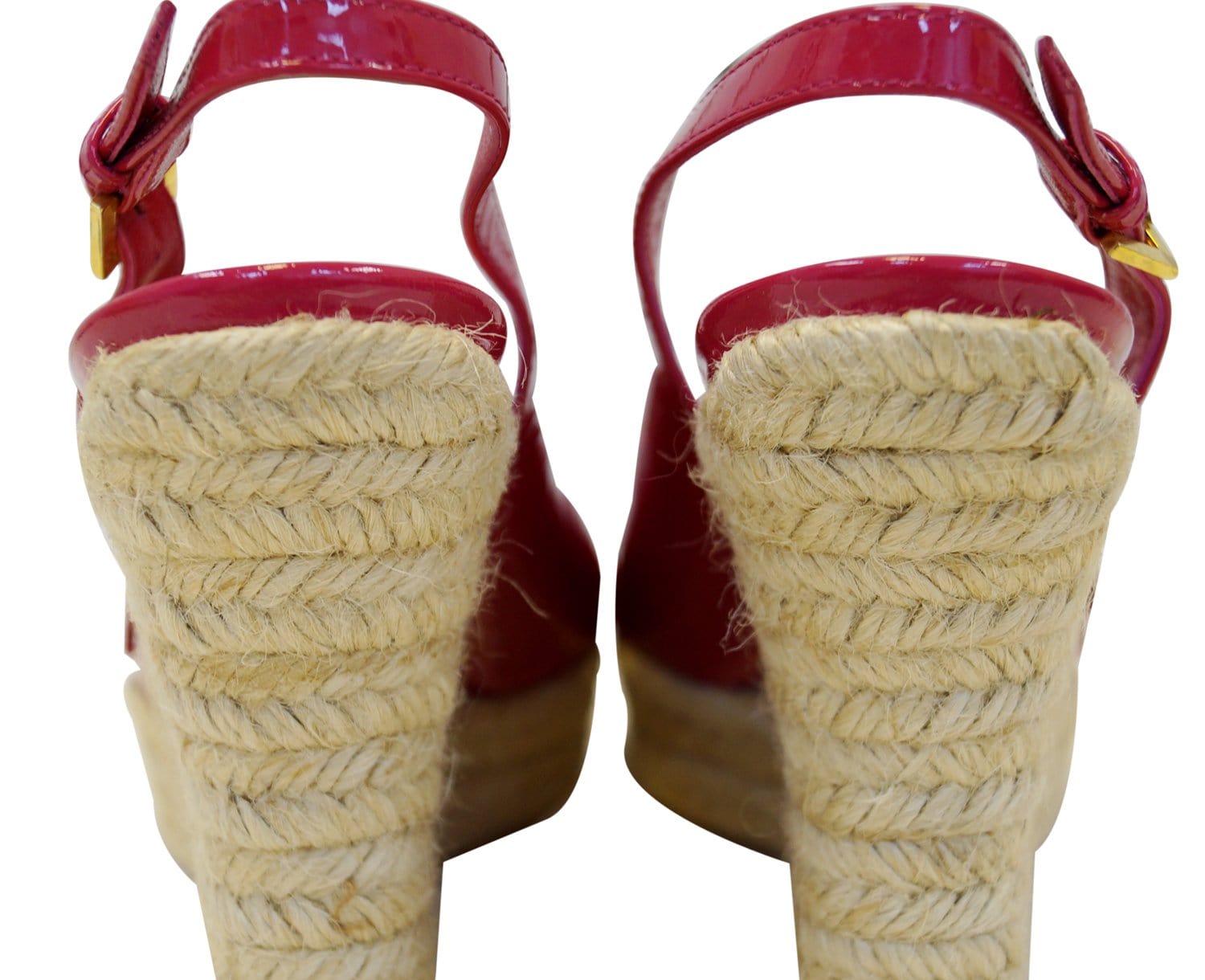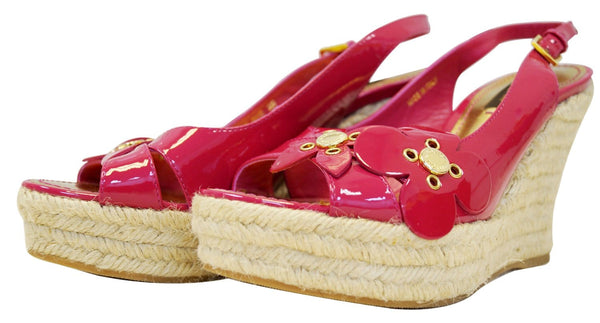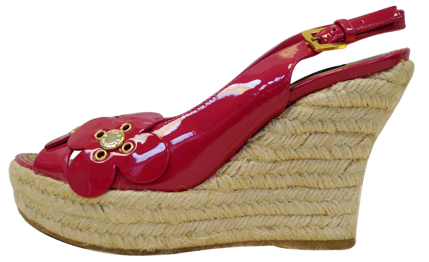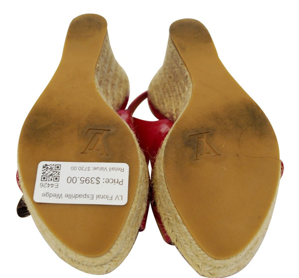 LOUIS VUITTON Patent Leather Floral Embellished Espadrille Wedges - Sale