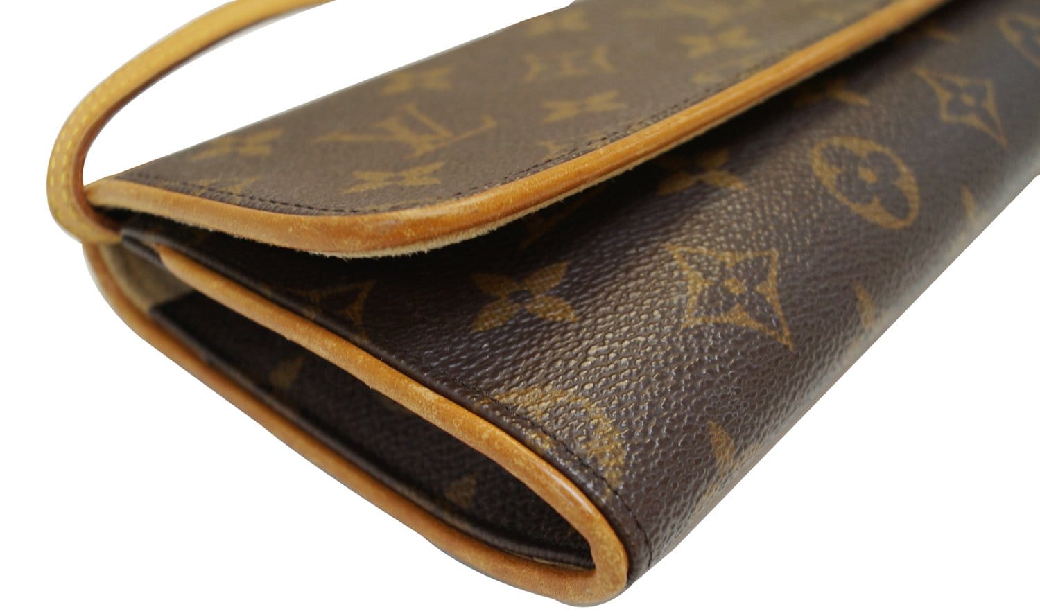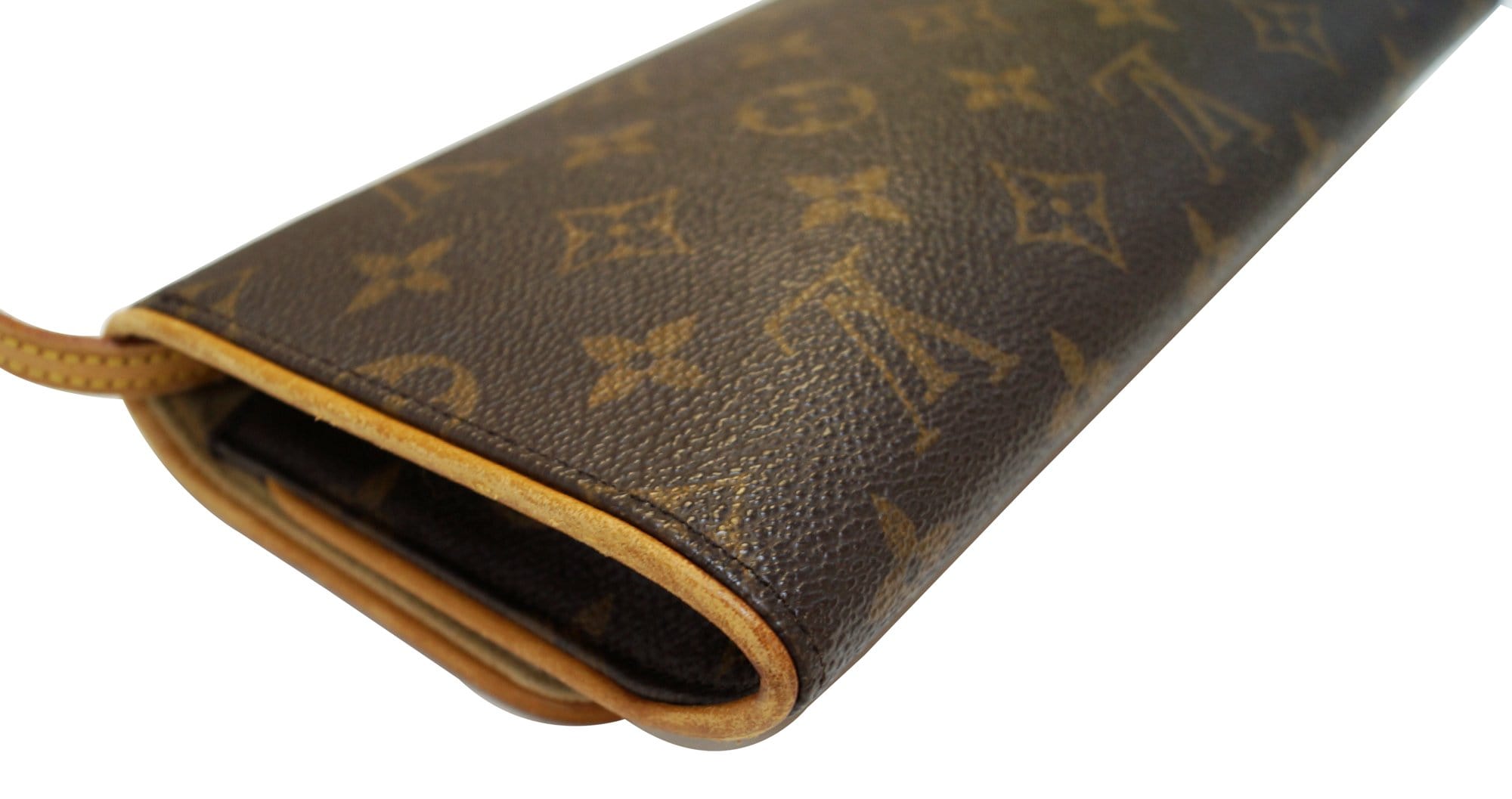 Louis Vuitton LV Monogram Canvas Pochette Twin GM Bag is the perfect clutch to carry all your personal items such as cell phone, makeup and keys. This bag comes with an adjustable leather belt that can be looped through to wear on the shoulder or cross-body for ultimate hands-free convenience.