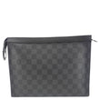 The Louis Vuitton Voyage MM Pouch in Damier Graphite canvas is a sleek and practical accessory with a spacious interior and silver-tone hardware. Ideal for organizing essentials, it can be carried solo or slipped into a larger bag.