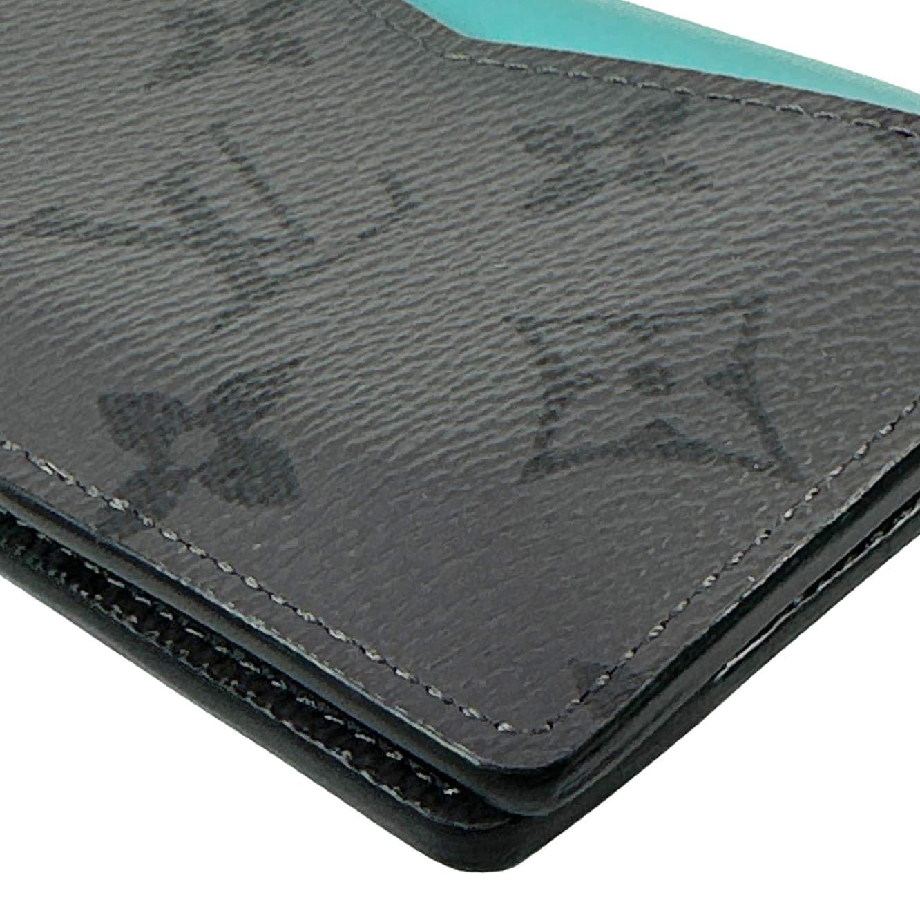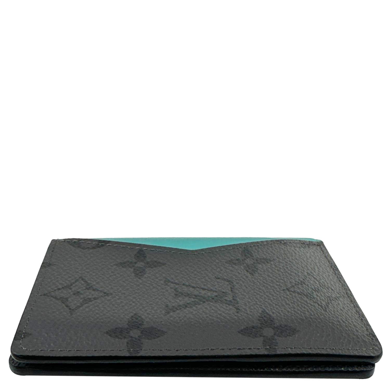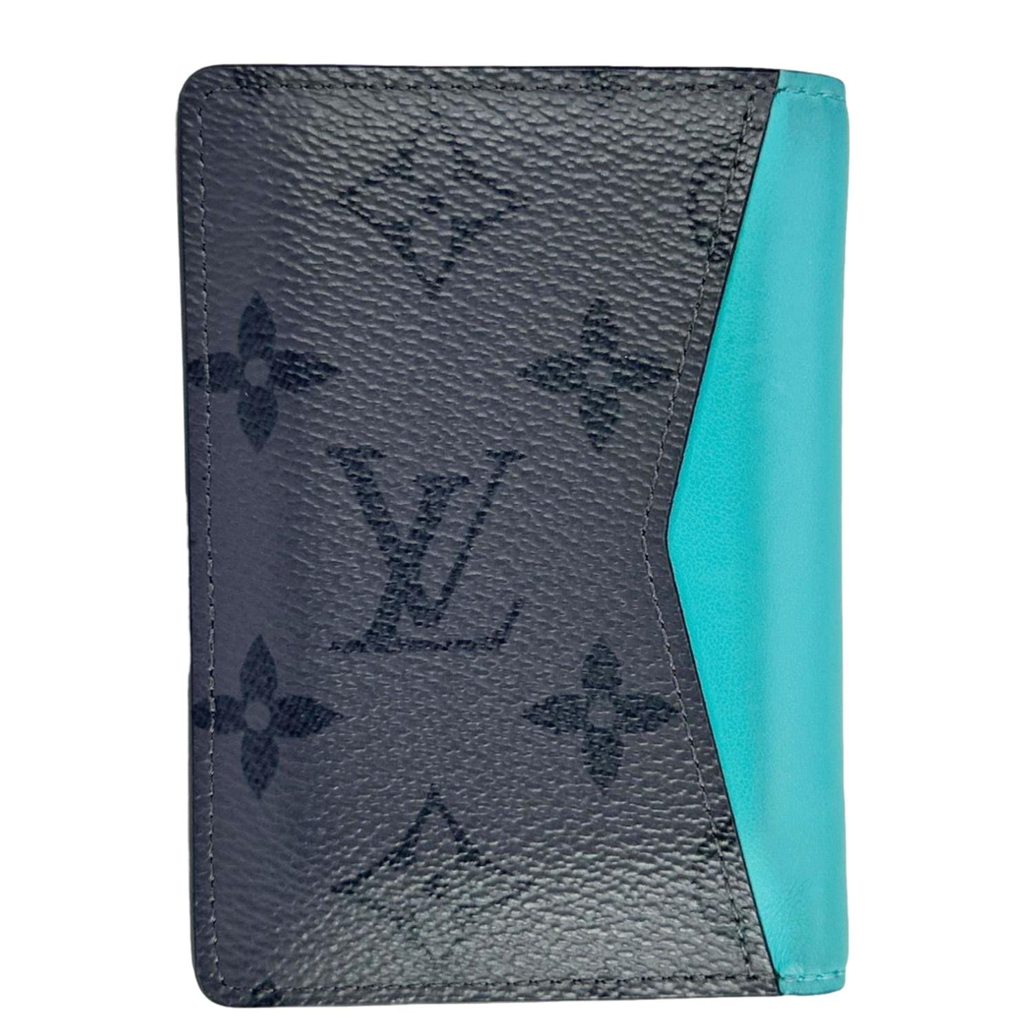 The Louis Vuitton Pocket Organizer in Monogram Eclipse Reverse canvas features a bold turquoise and grey finish. Compact yet functional, it offers multiple slots to keep essentials neatly organized.