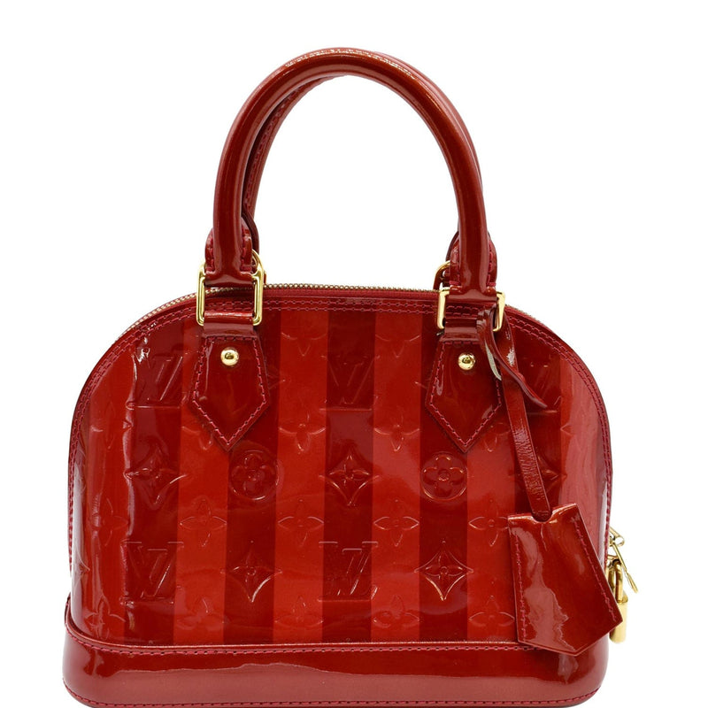 LOUIS VUITTON Rayures Alma BB Vernis Leather Satchel Crossbody Bag Pomme D'Amour