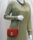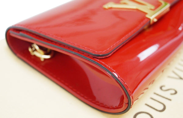 LOUIS VUITTON Red Patent Leather Louise Clutch Shoulder Crossbody Bag