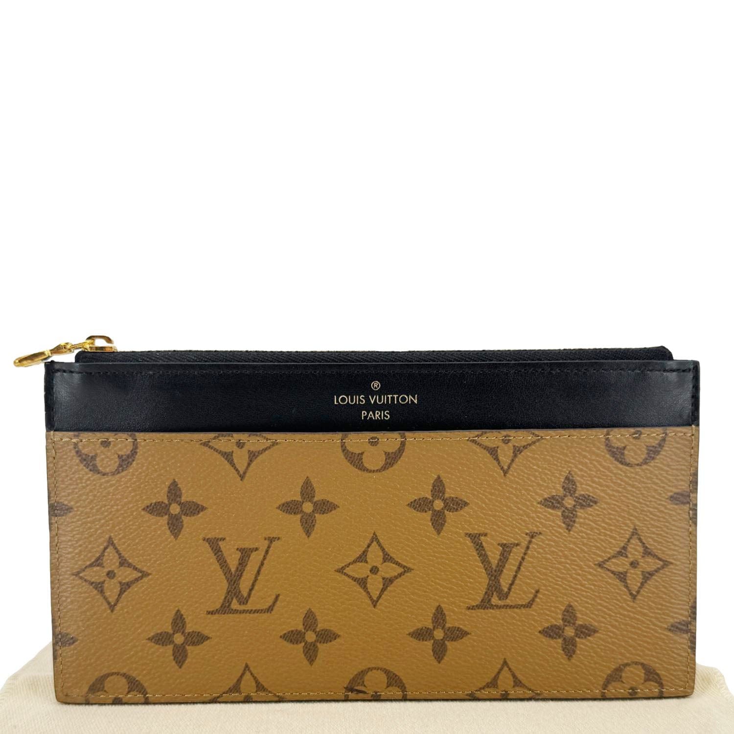 Louis Vuitton Slim Purse crafted in Monogram Reverse Canvas with a sleek, compact silhouette. Features a flap closure and an organized interior for cards and essentials.