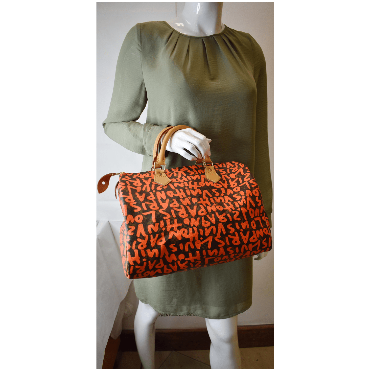 LOUIS VUITTON Speedy 30 Graffiti Monogram Satchel Bag Orange