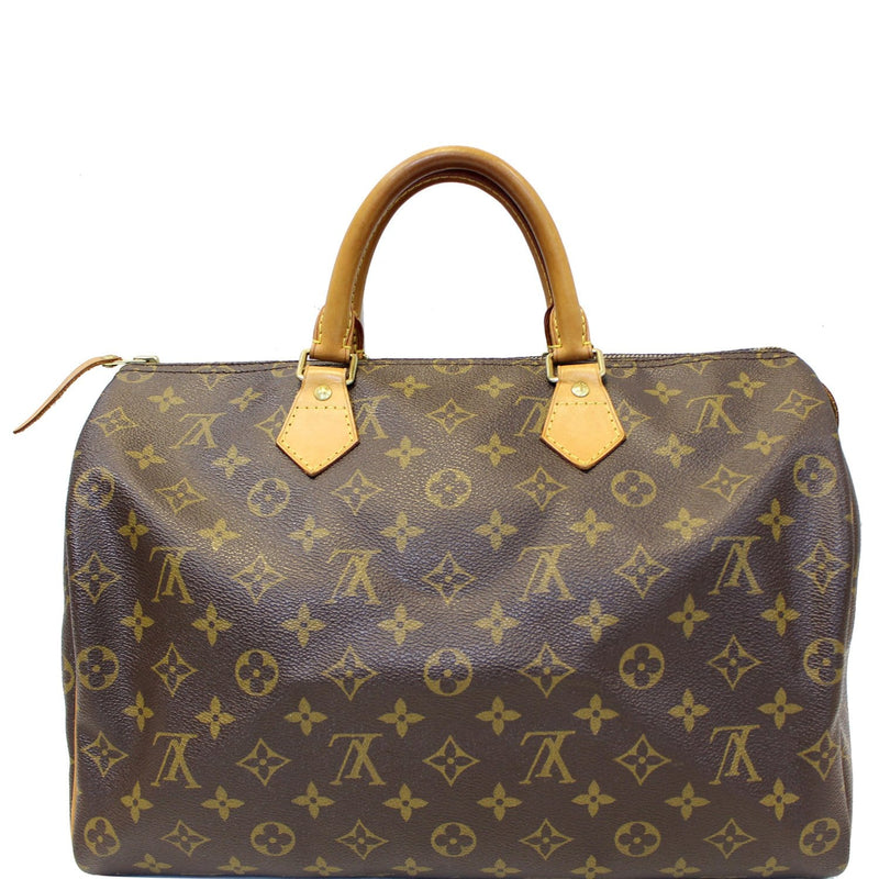 LOUIS VUITTON Speedy 35 Monogram Canvas Satchel Bag Brown