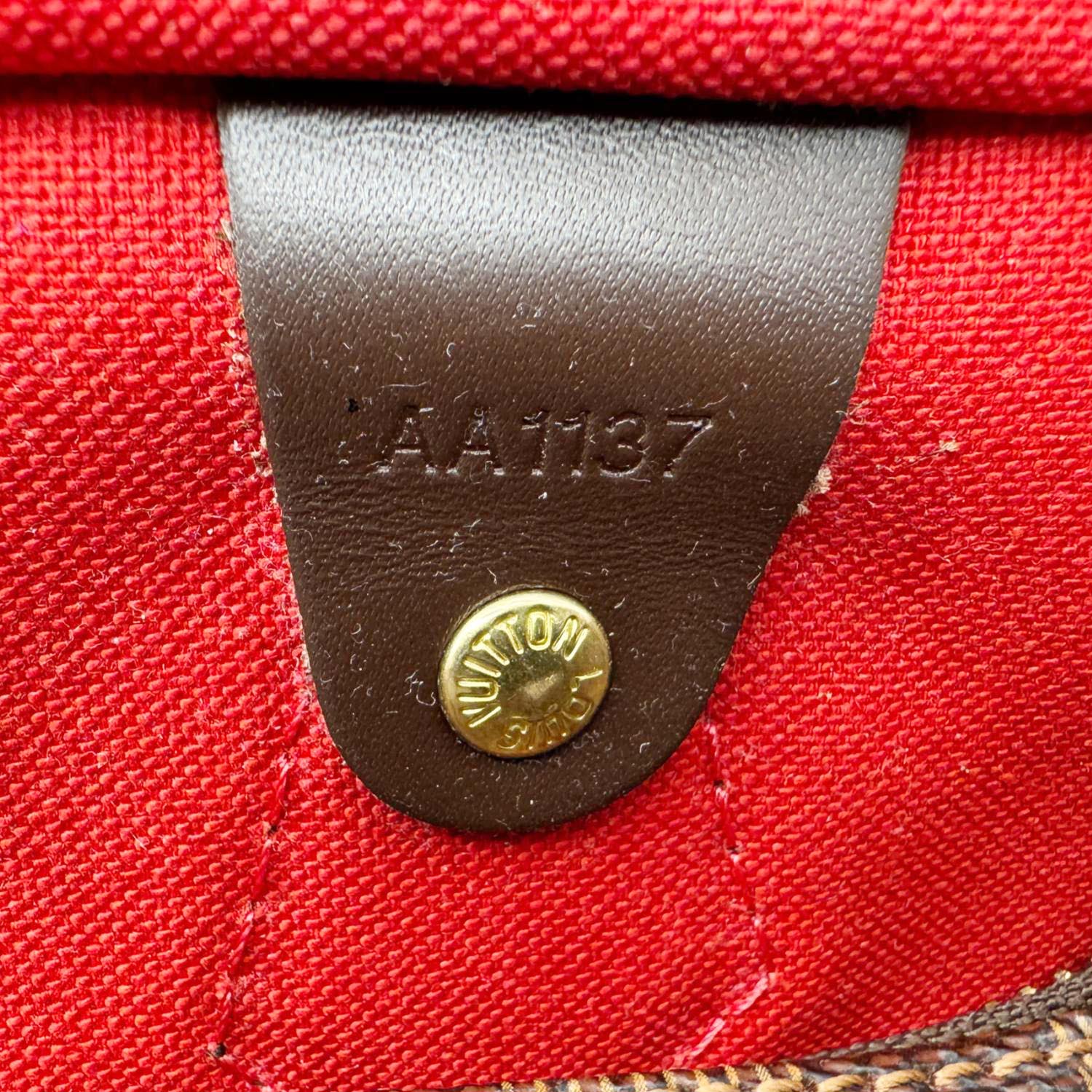 - Material: Damier Ebene and leather