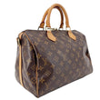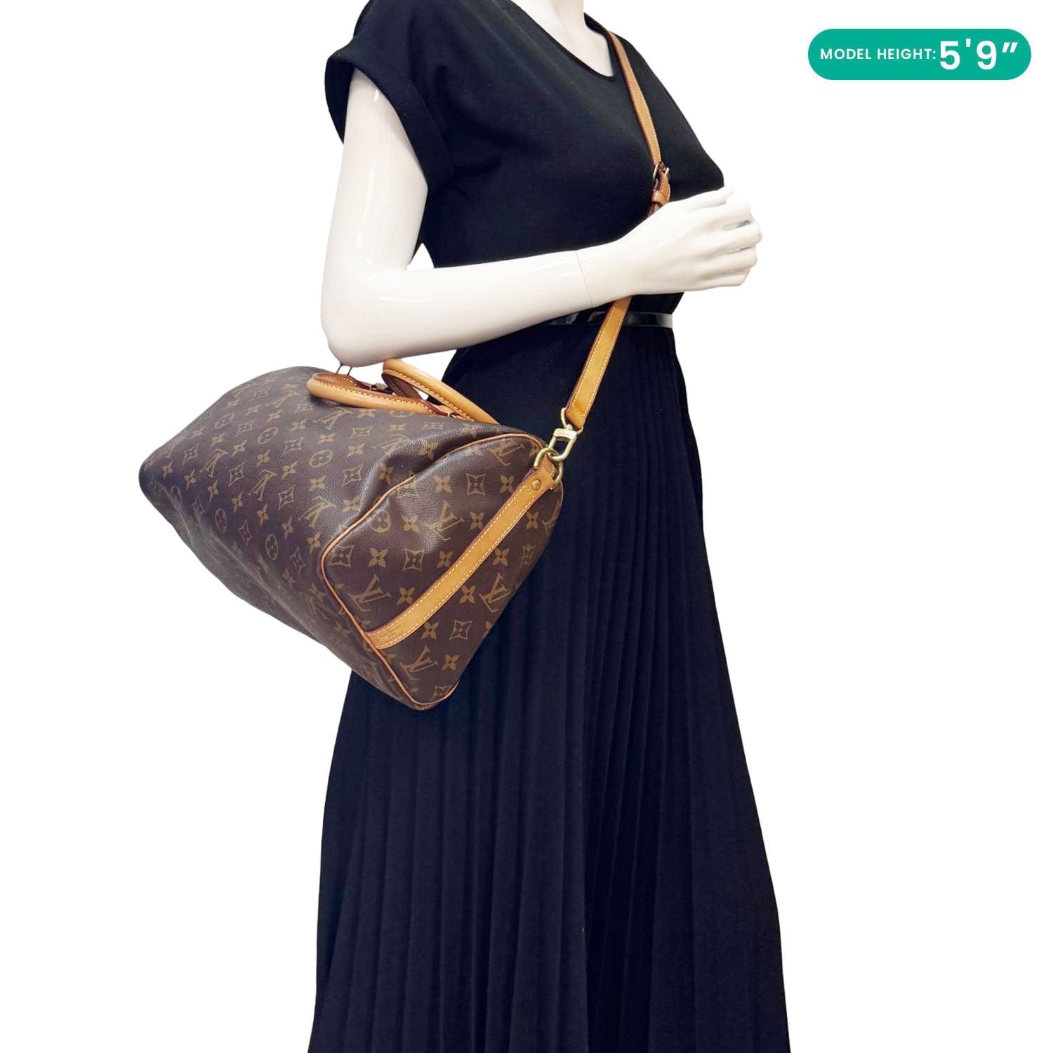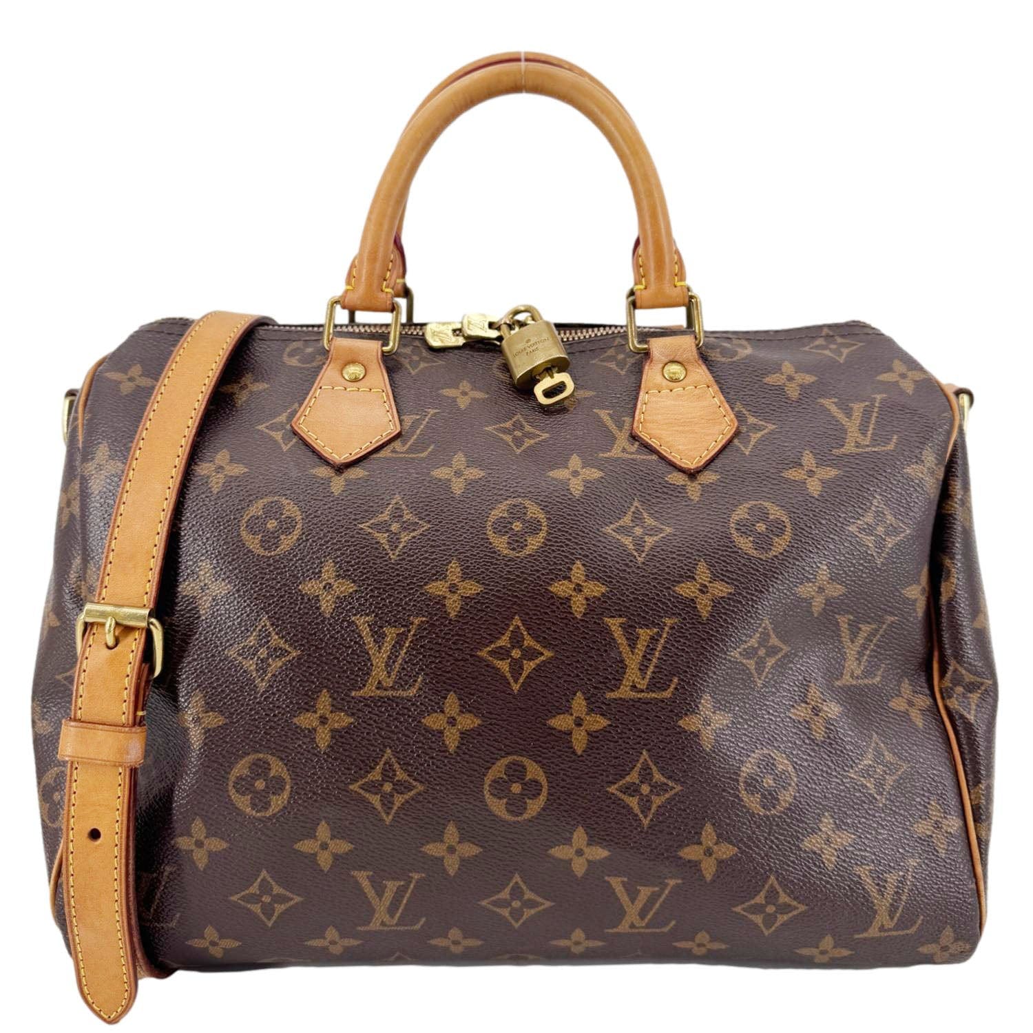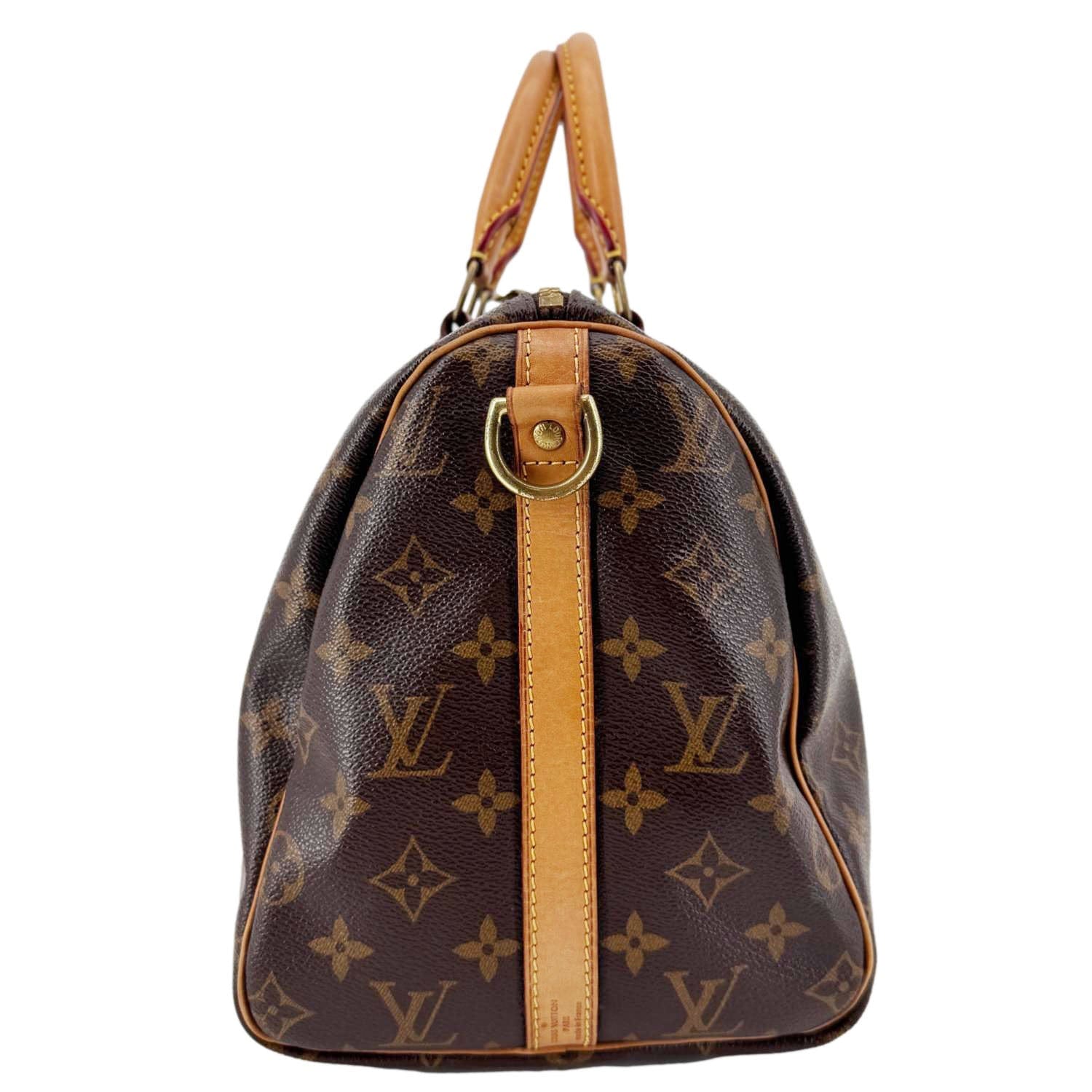Louis Vuitton Speedy 30 Bandoulière Monogram Canvas Crossbody Bag in Brown features the iconic monogram canvas with rolled leather handles and a removable shoulder strap. A timeless and versatile design, perfect for daily use and travel.