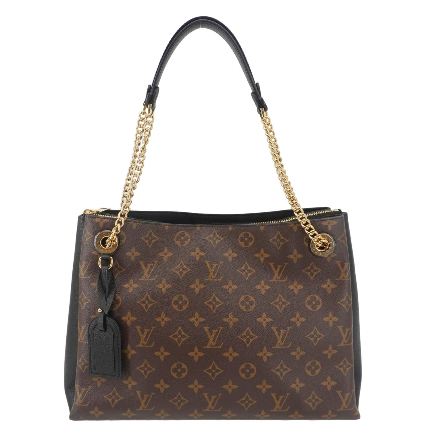 The Louis Vuitton Surene MM Shoulder Bag in Monogram Canvas and black leather trim blends timeless elegance with modern functionality. Featuring gold-tone chain straps and a spacious, organized interior, it's perfect for both daily use and sophisticated outings.