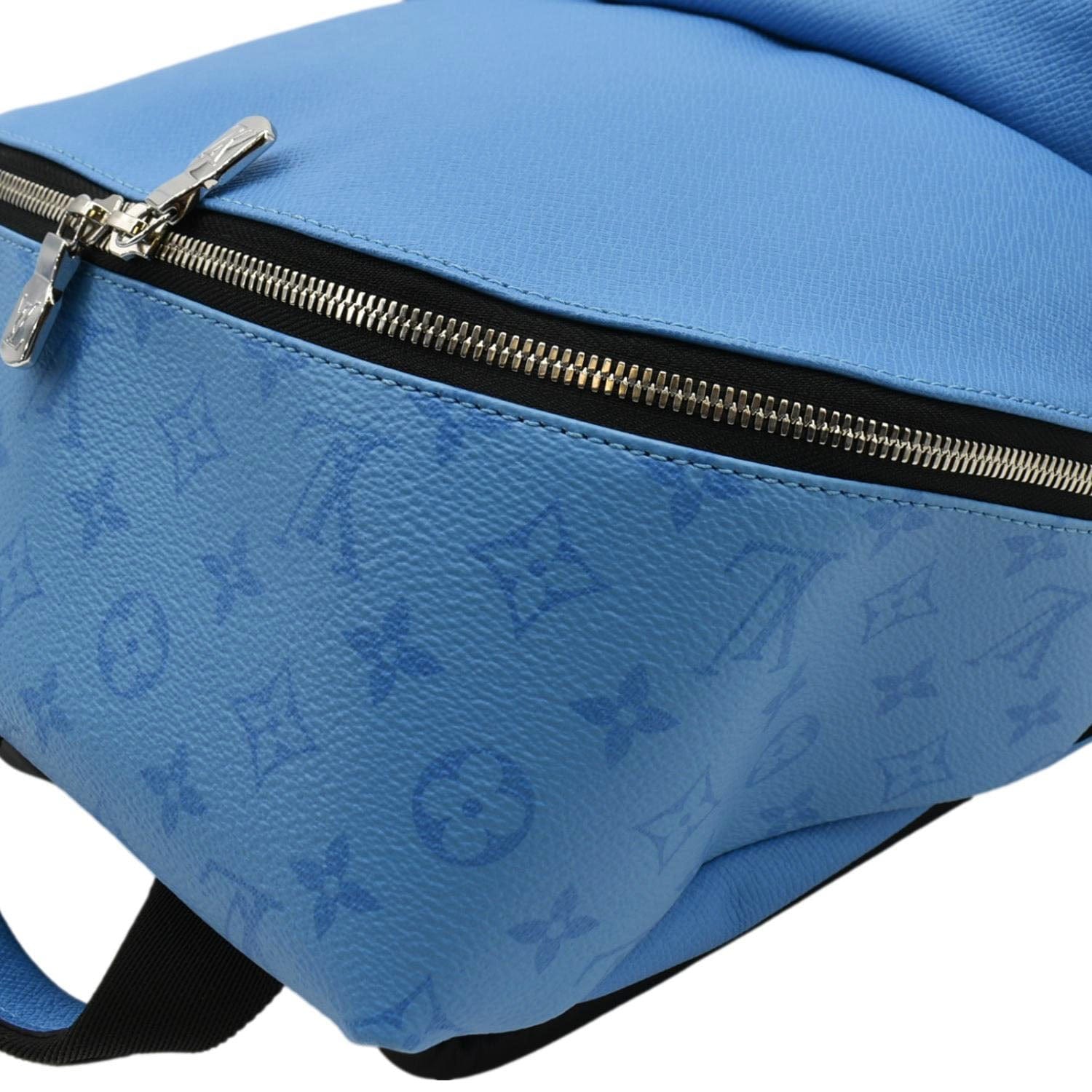Elevate your style with the sophisticated LOUIS VUITTON Taigarama Discovery PM Monogram Leather Backpack in elegant blue. Crafted with luxurious leather and iconic monogram accents, this backpack seamlessly combines luxury and functionality for a chic accessory.