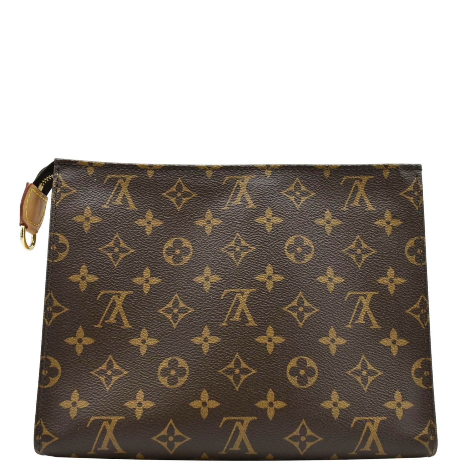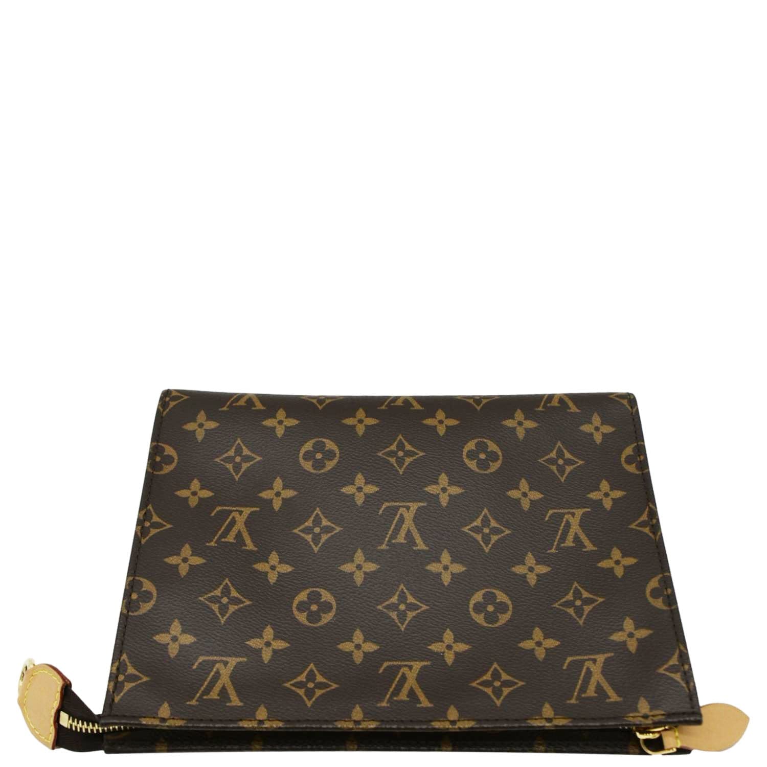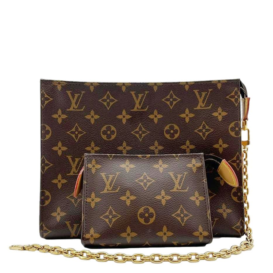 This versatile clutch features the iconic Monogram Canvas and a detachable chain, perfect for carrying essentials with elegance. It combines the functionality of a toiletry pouch with the chic style of a Louis Vuitton handbag.