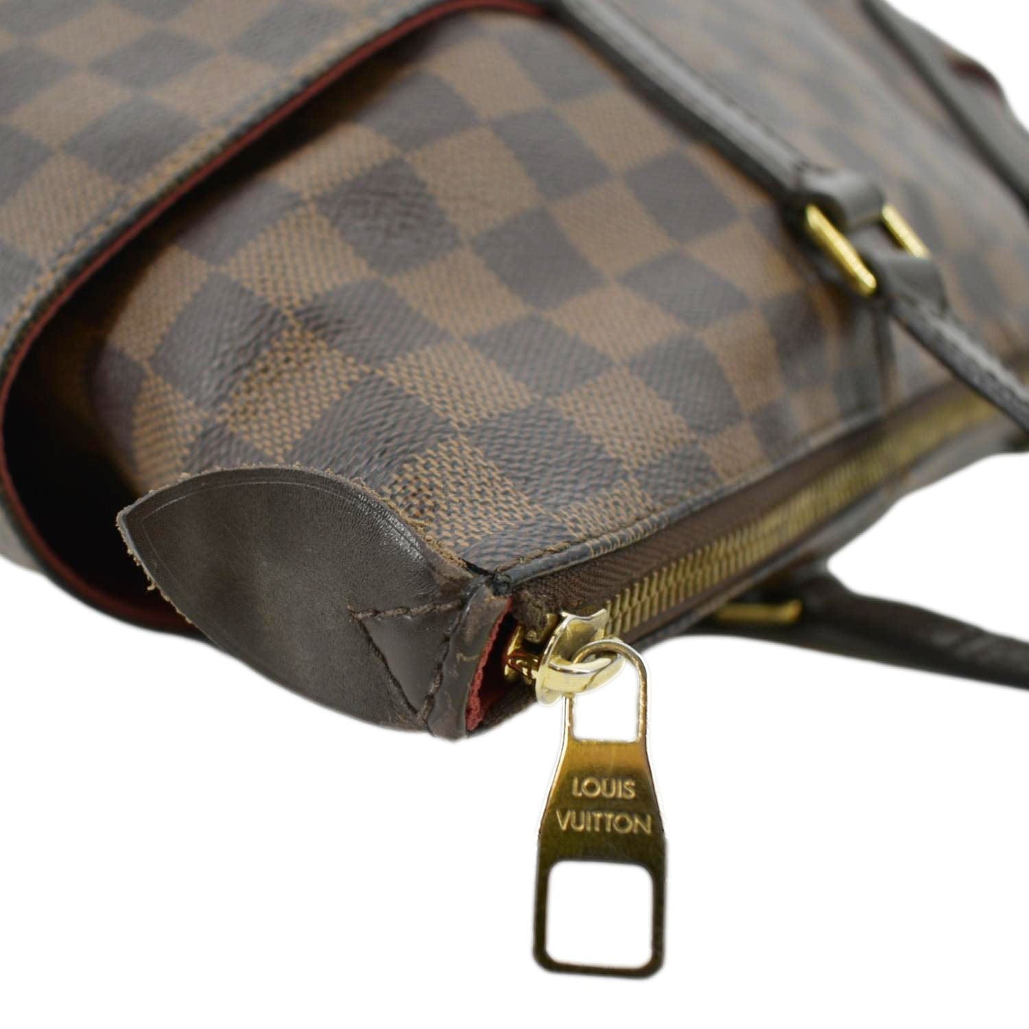 Embrace sophistication with this LOUIS VUITTON Totally Bag in rich brown tones. Crafted with iconic Damier Ebene, this spacious and versatile bag combines luxury and practicality, perfect for elevating any ensemble with timeless elegance