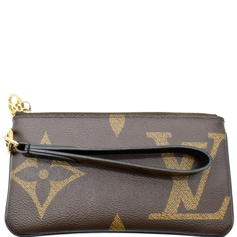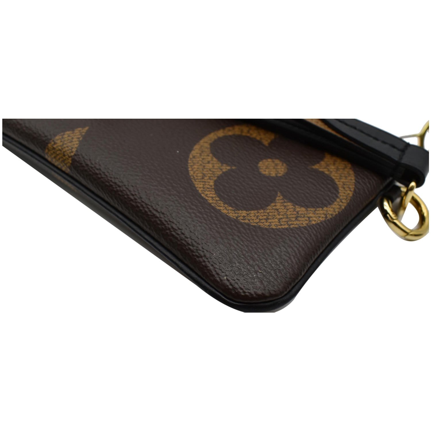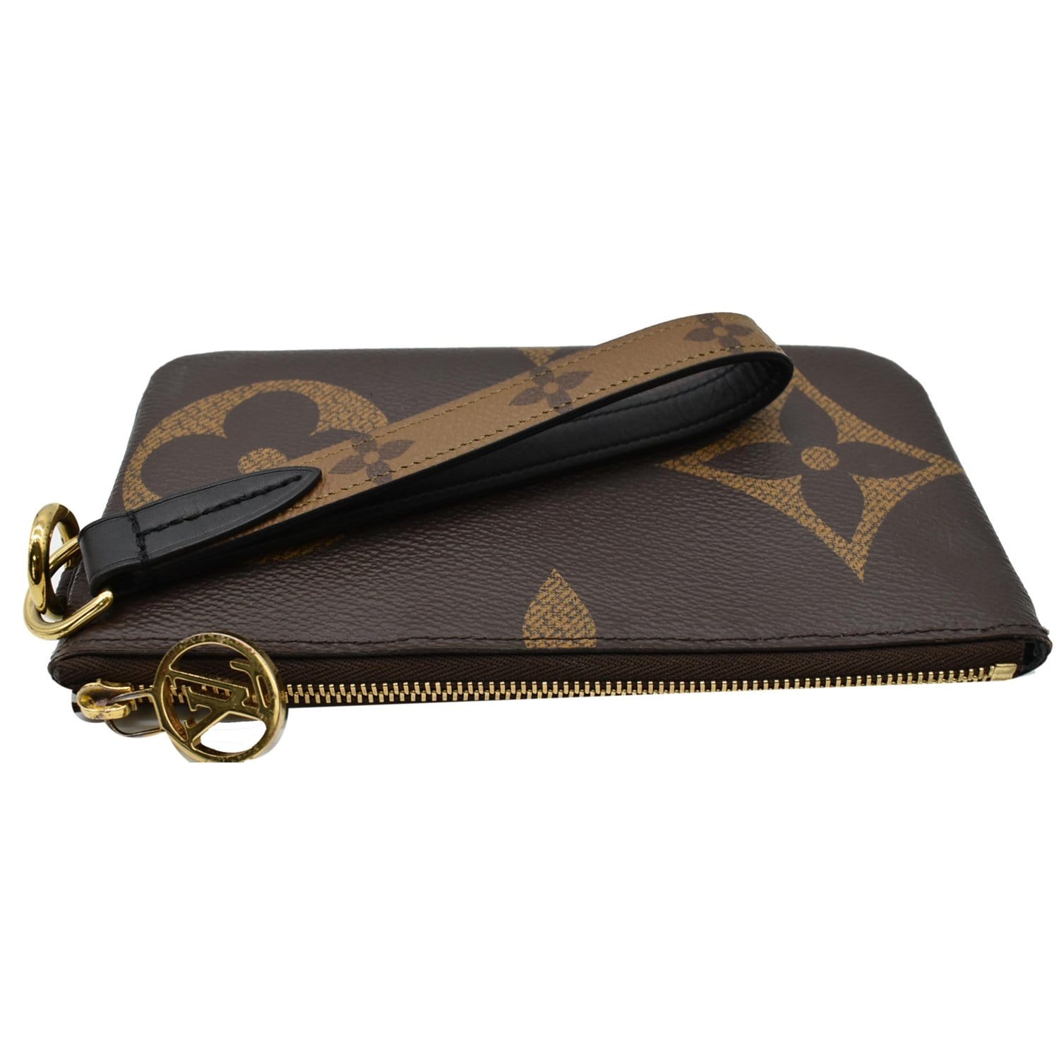LOUIS VUITTON Trio Rectangle Giant Monogram Reverse Wristlet Pouch Brown
