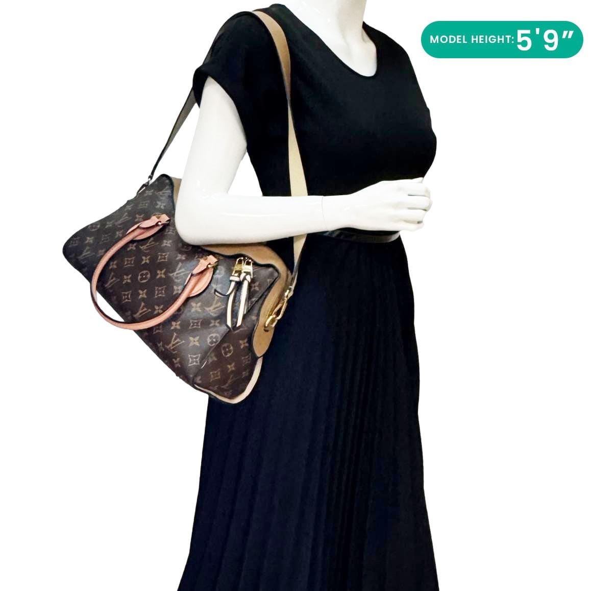 The LOUIS VUITTON Tuileries Shoulder Bag in Sesame Monogram Canvas blends classic design with a modern twist, featuring tricolor leather accents. Its roomy interior and chic silhouette make it perfect for stylish everyday use.