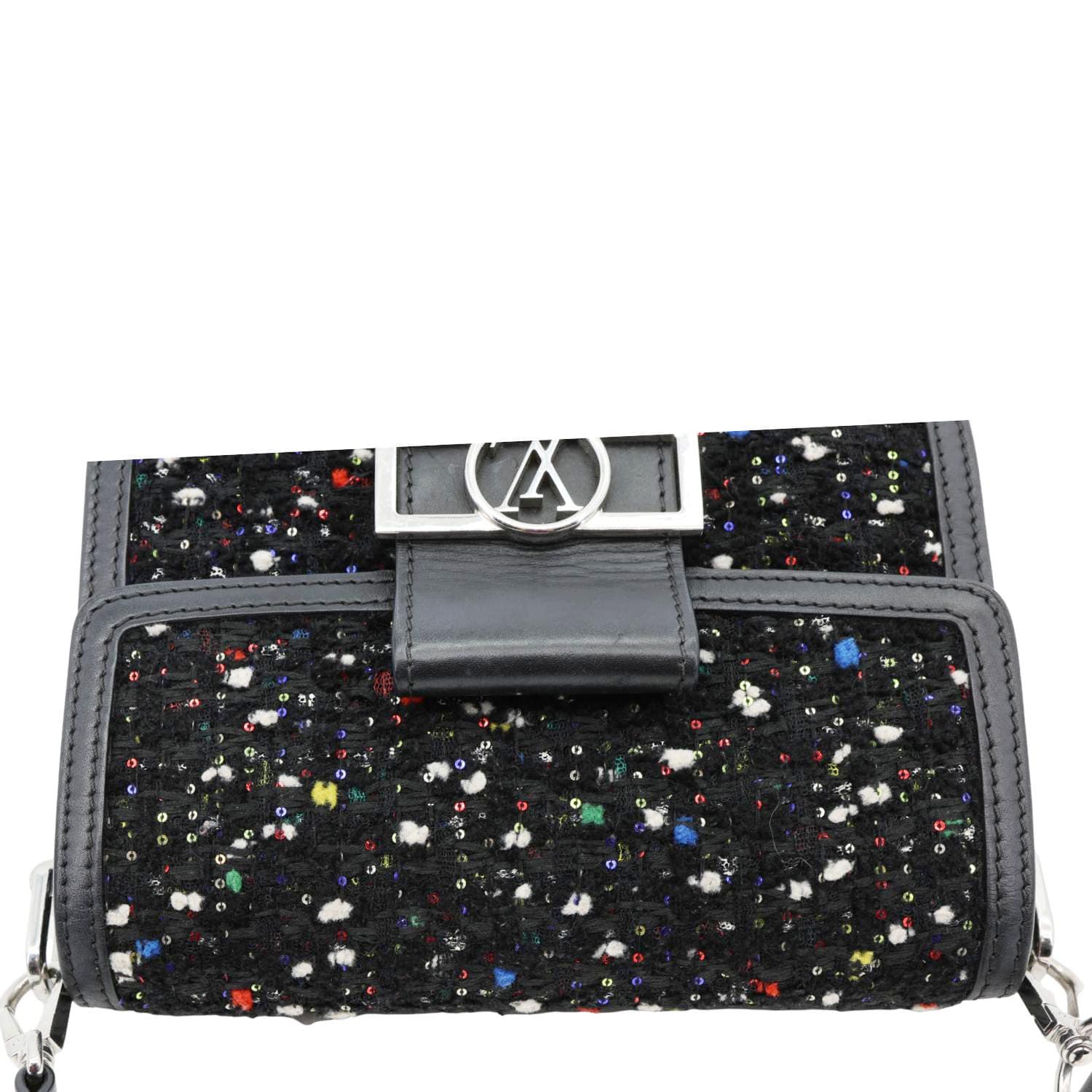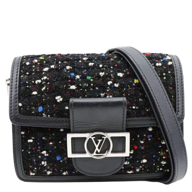 The Dauphine Mini in tweed and sequins blends sparkle with timeless Louis Vuitton elegance. Its compact size and gold-tone accents make it ideal for statement evening looks.