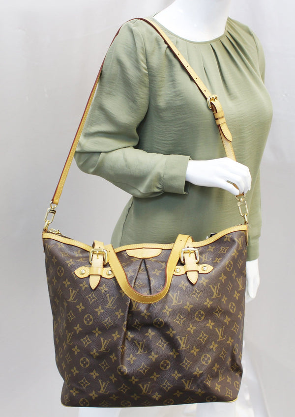 LOUIS VUITTON Used Handbag Monogram Palermo GM Tote Shoulder Bag is the one for you. It features stylish details such as inverted pleating and a gold tone zipper LV pull.