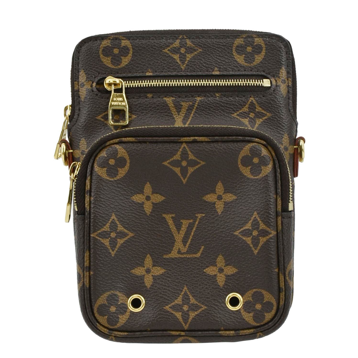 LOUIS VUITTON Utility Phone Sleeve Monogram Canvas Crossbody Bag Brown