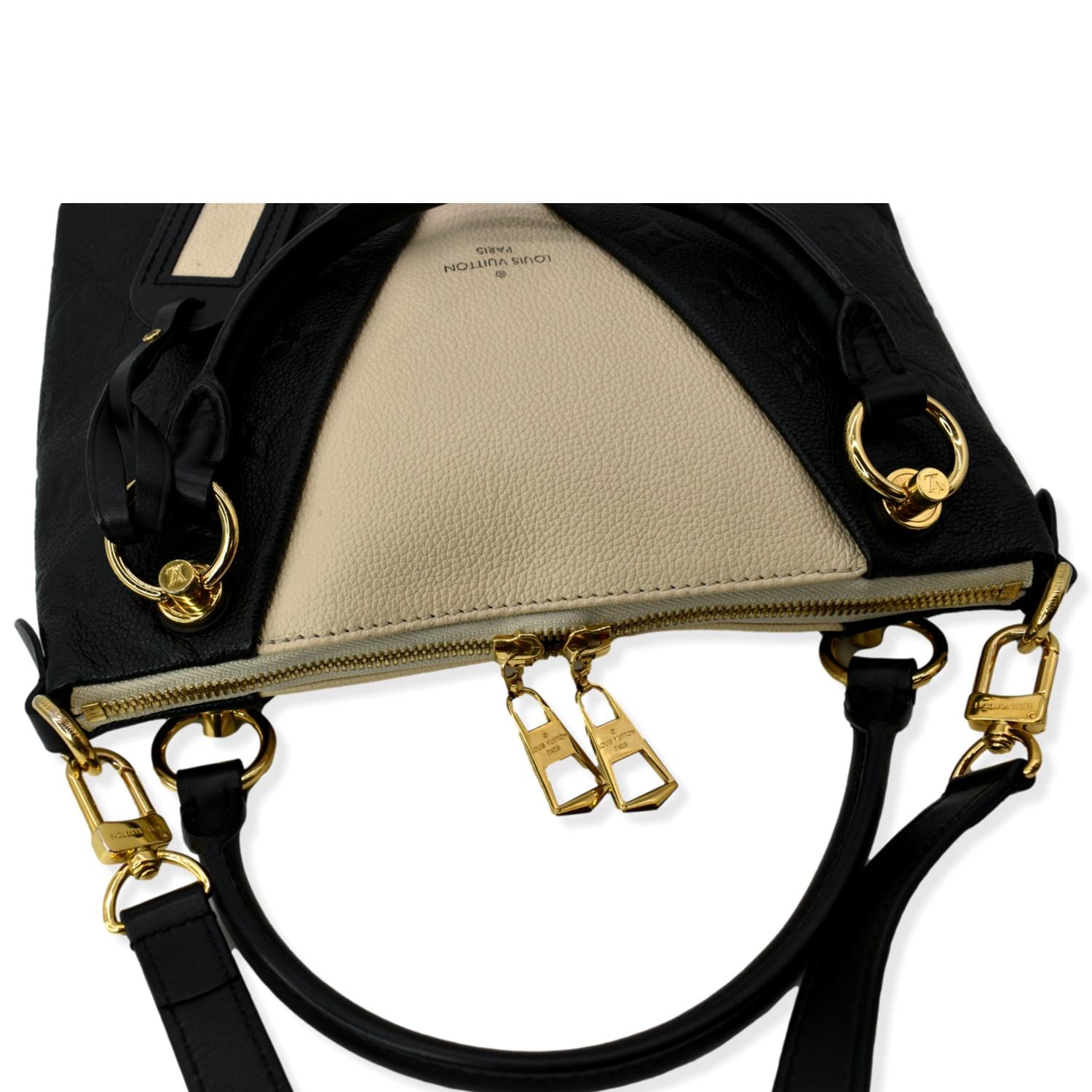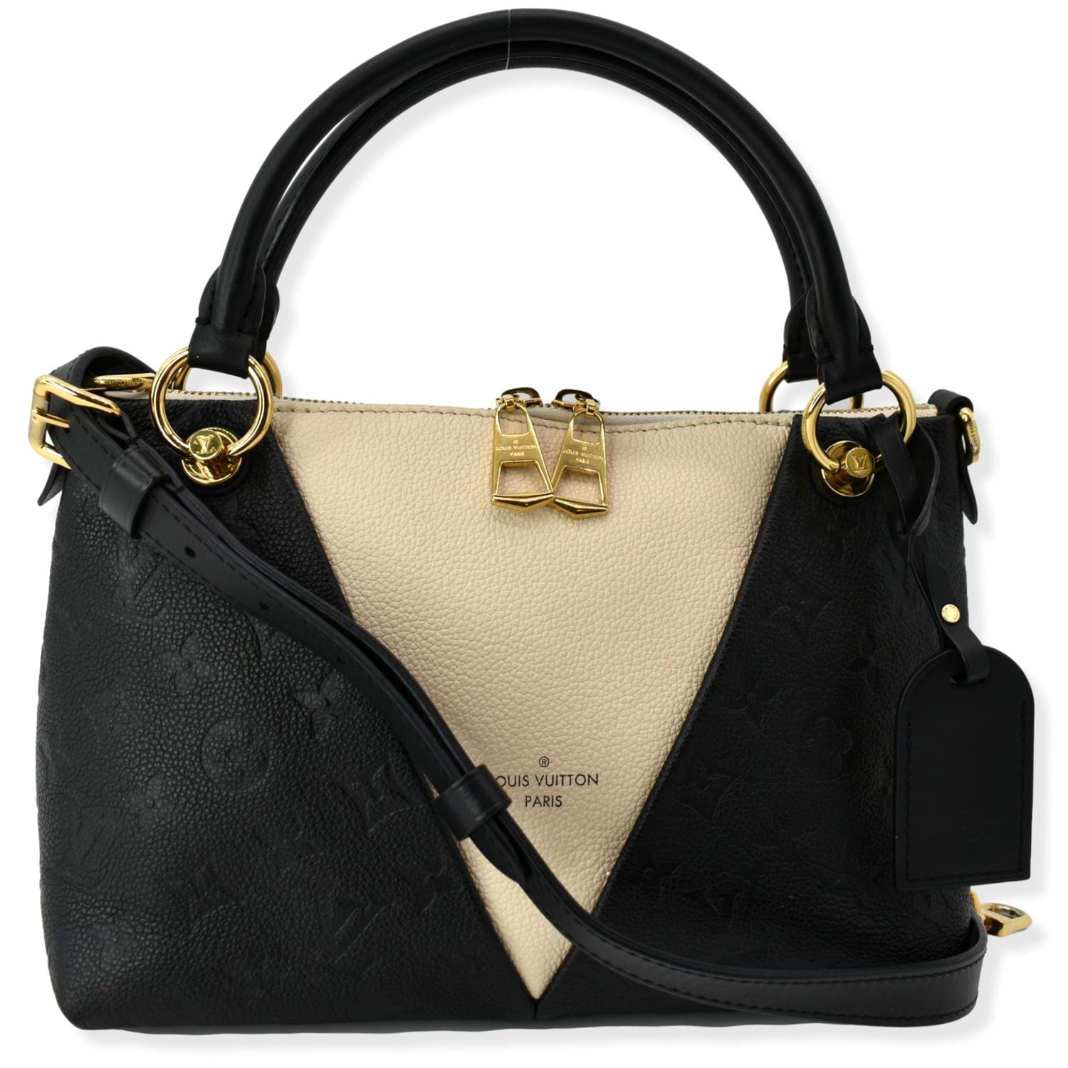 LOUIS VUITTON V BB Monogram Empreinte Tote Shoulder Bag Beige/Black