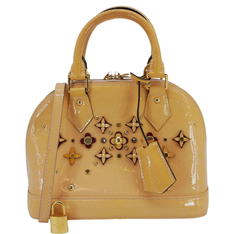 LOUIS VUITTON Alma BB Flowers Vernis Leather Satchel Bag Jaune Passion