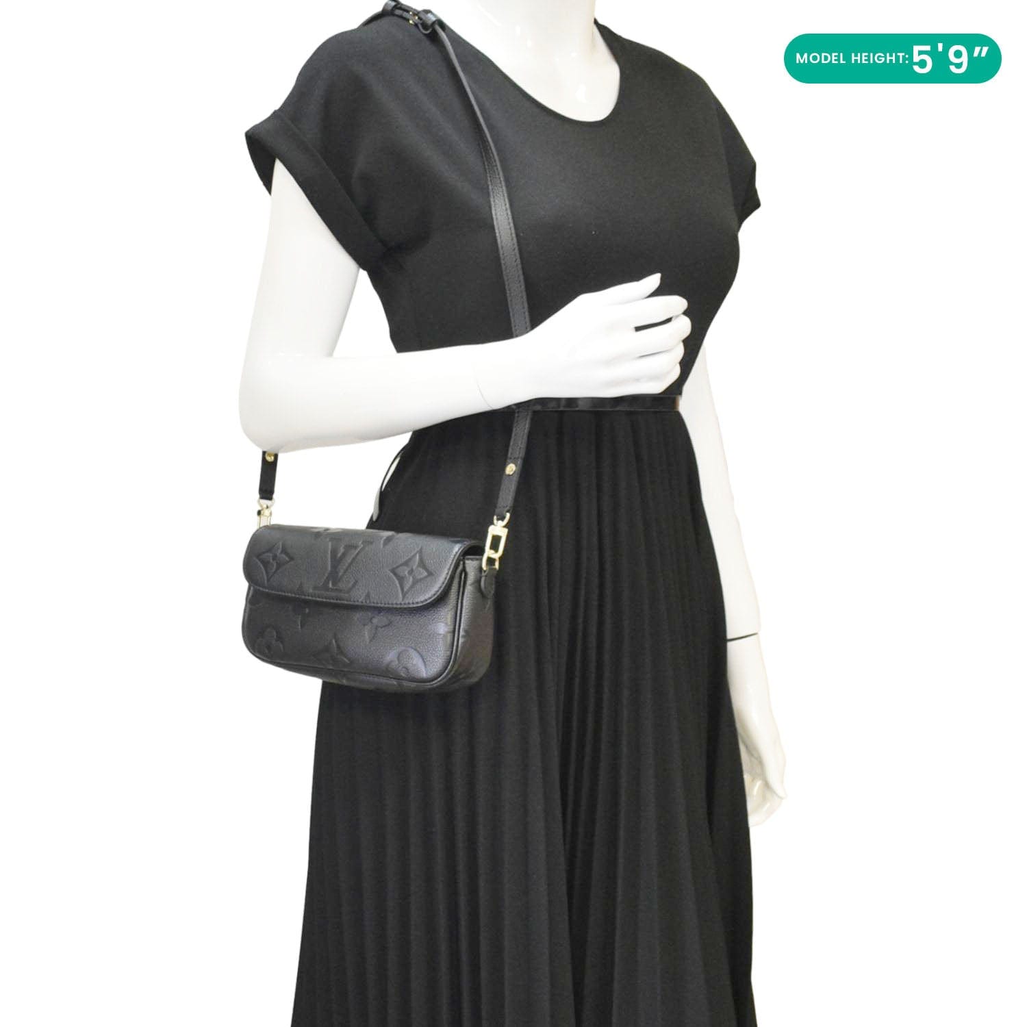The LOUIS VUITTON Ivy Empreinte Leather Wallet On Chain features a sleek, embossed monogram design in luxurious black leather. This versatile shoulder bag combines elegance with practicality, offering both a wallet and a chain strap for hands-free convenience.
