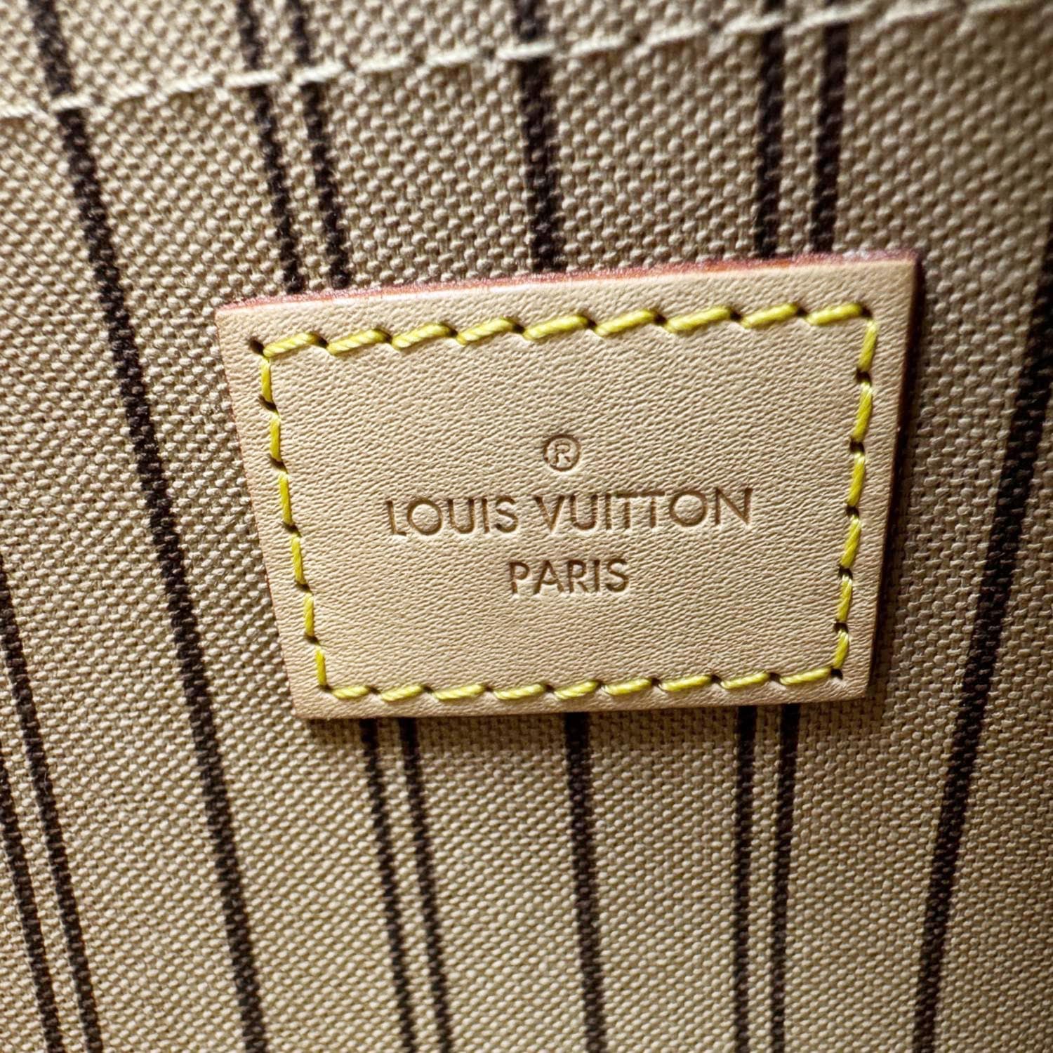 The Louis Vuitton Neverfull Monogram Canvas Pochette Wristlet in Brown features the iconic LV monogram on durable coated canvas with a sleek leather strap. Compact yet versatile, it’s perfect as a clutch or an organizer within a larger tote.
