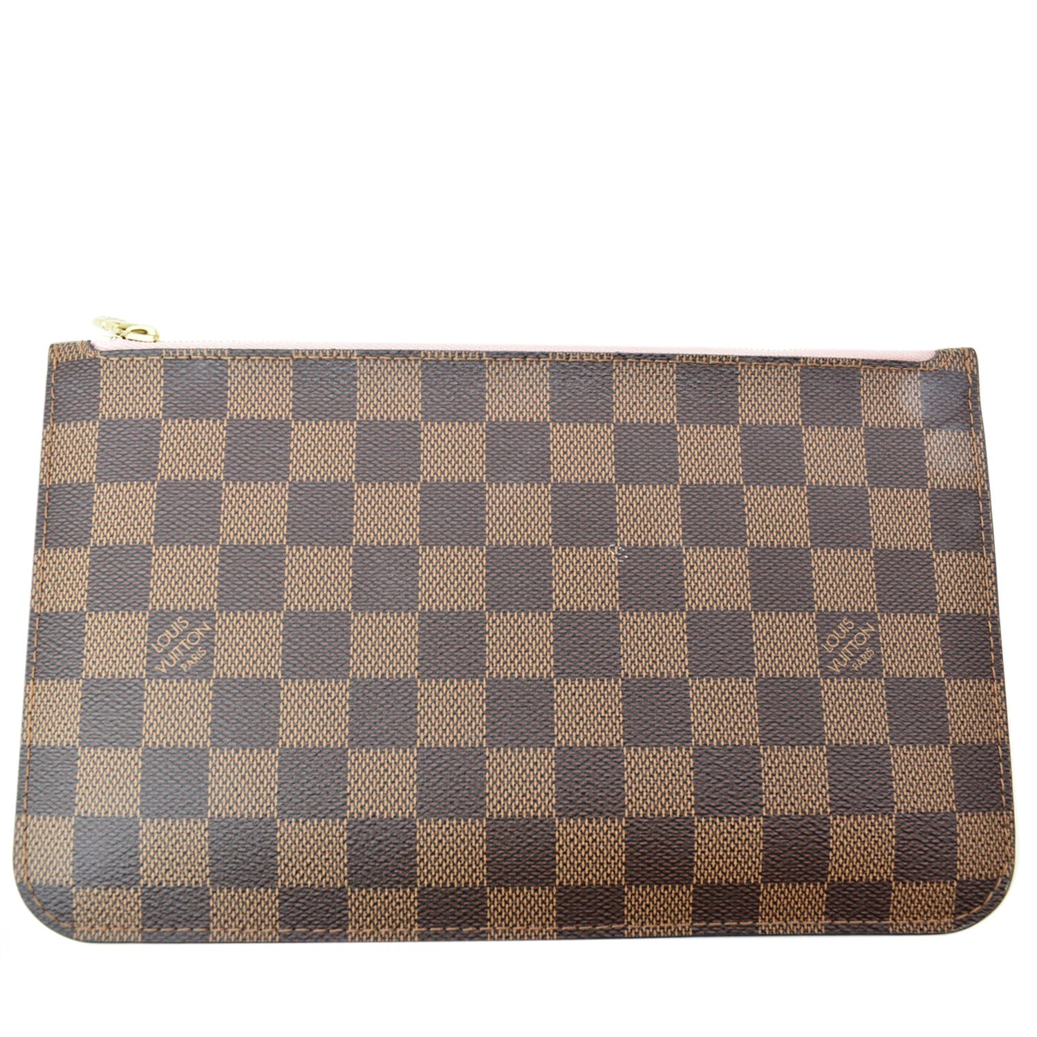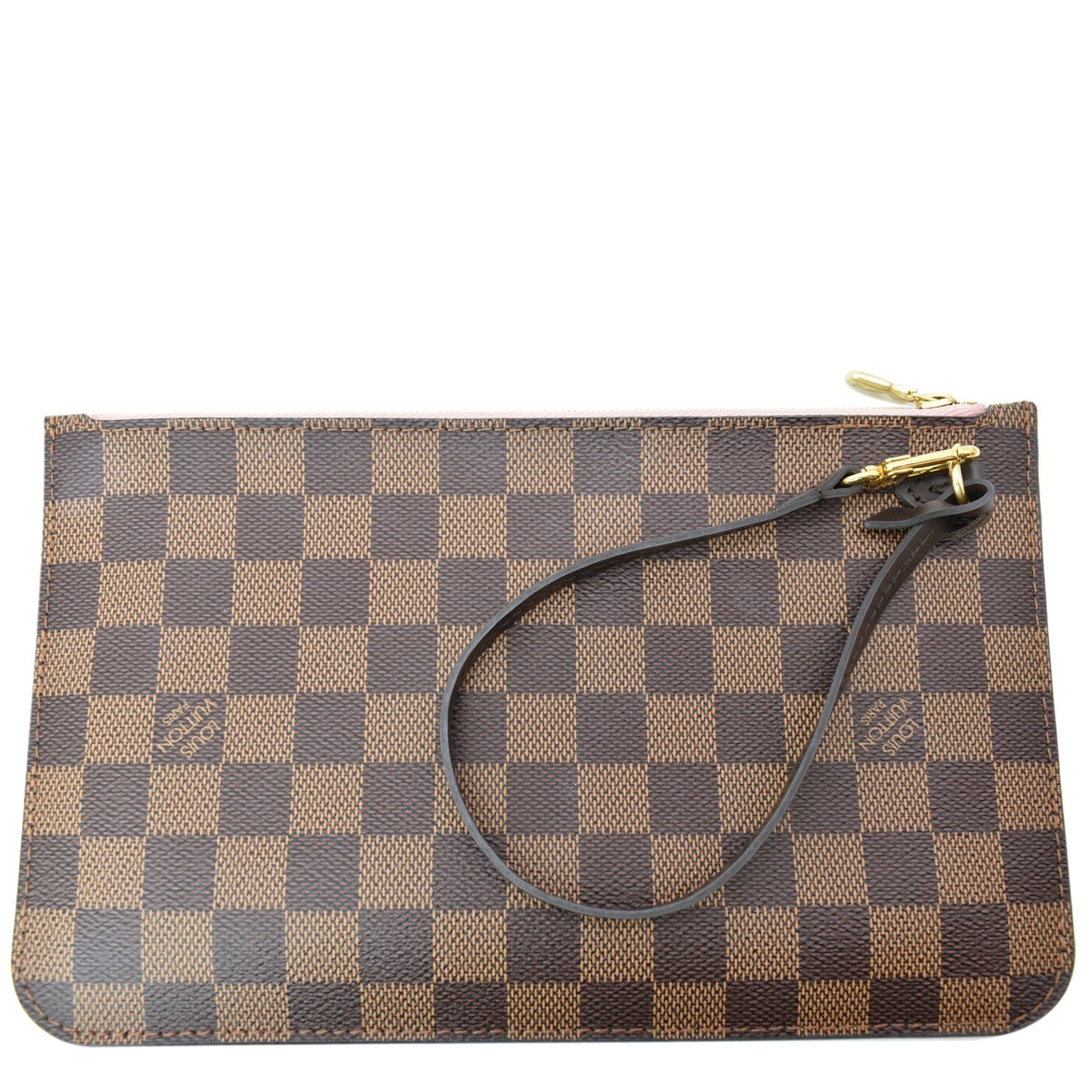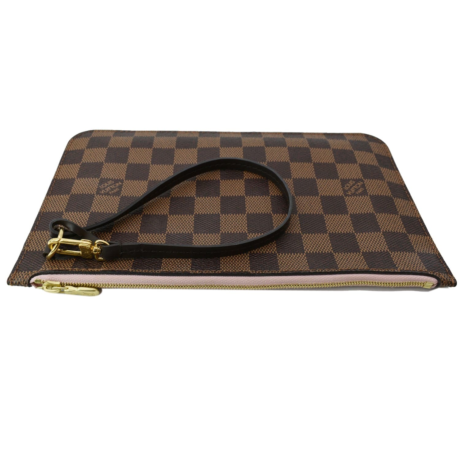 LOUIS VUITTON Pochette Wristlet Pouch Damier Ebene Neverfull MM Rose Ballerine