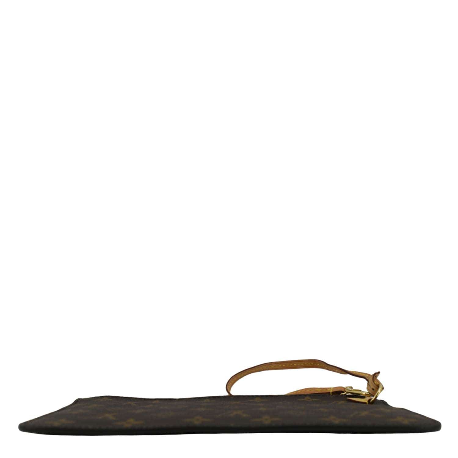 The Louis Vuitton Monogram Canvas Wristlet Pouch in brown showcases the iconic LV monogram on durable canvas. Compact and versatile, it features a wrist strap, making it perfect for carrying essentials on the go.