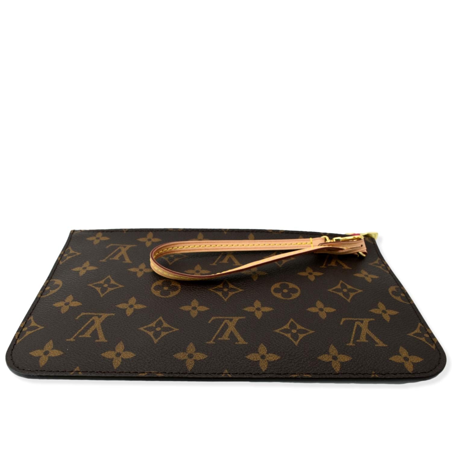 LOUIS VUITTON Neverfull Monogram Canvas Pochette Wristlet Pouch Brown