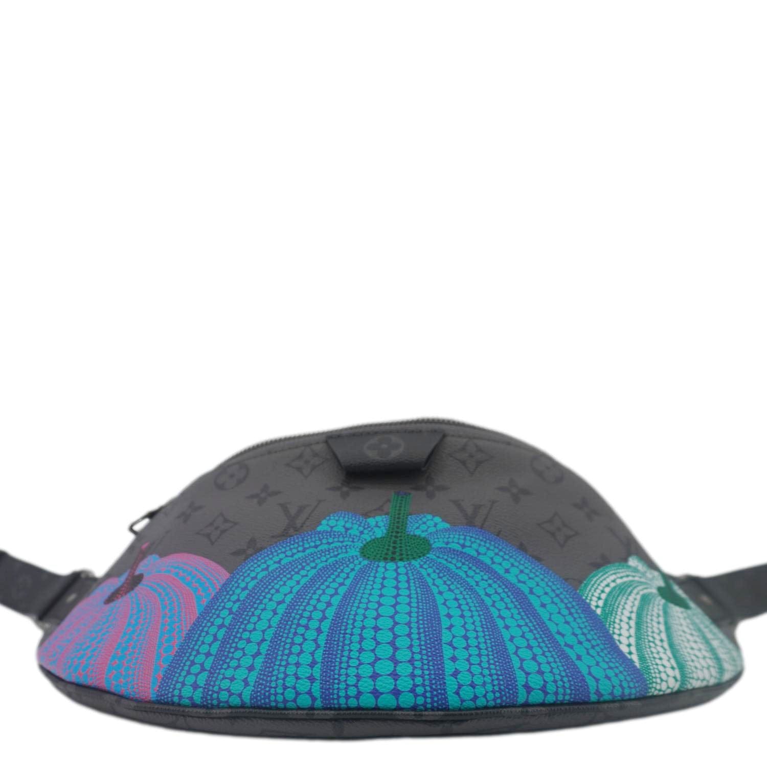 The Louis Vuitton LV x YK Reverse Eclipse Pumpkin Canvas Bumbag in gray is a bold collaboration with artist Yayoi Kusama, featuring her signature pumpkin motif. Crafted from Monogram Eclipse canvas, this stylish and functional bumbag offers multiple carrying options with its adjustable strap.