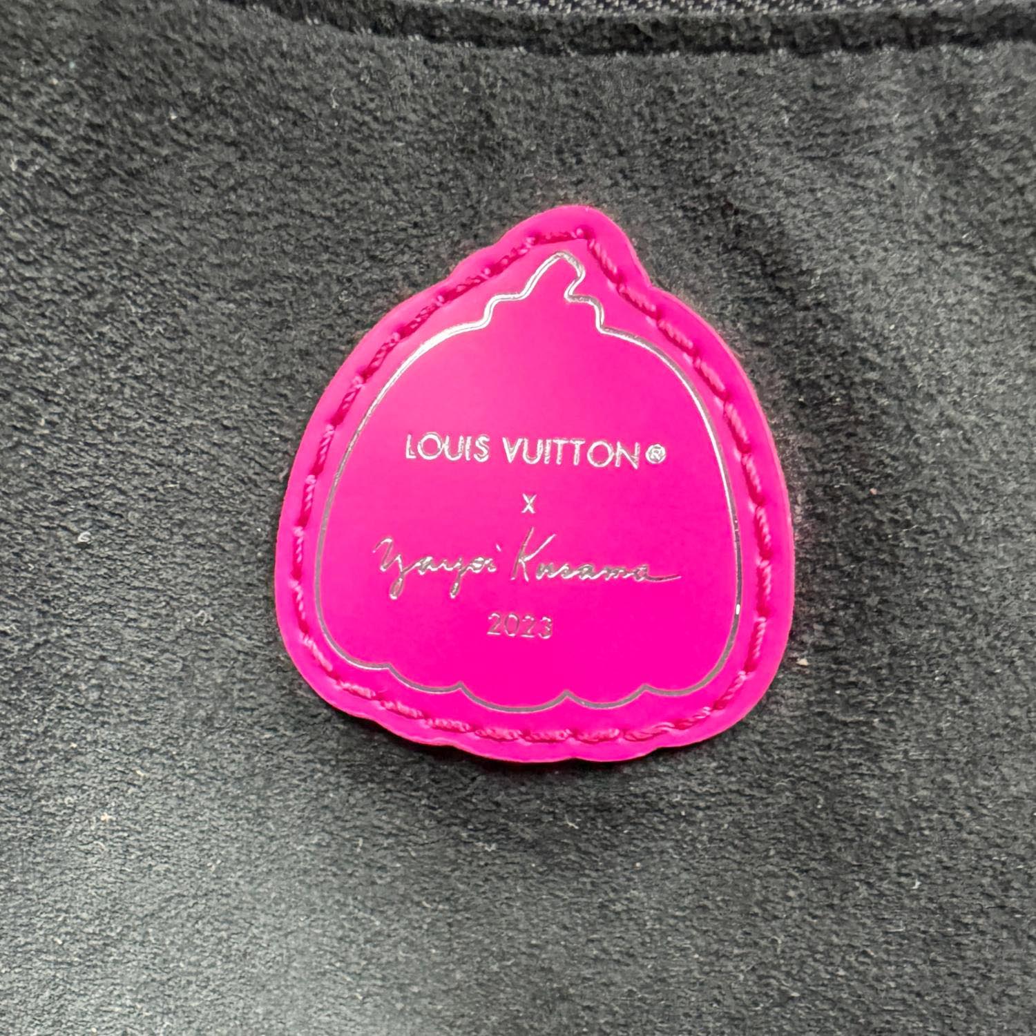 The LV x Yayoi Kusama Neverfull MM features Monogram Empreinte leather adorned with signature Infinity Dots in vibrant fuchsia. Spacious and iconic, it blends artistic flair with everyday functionality.