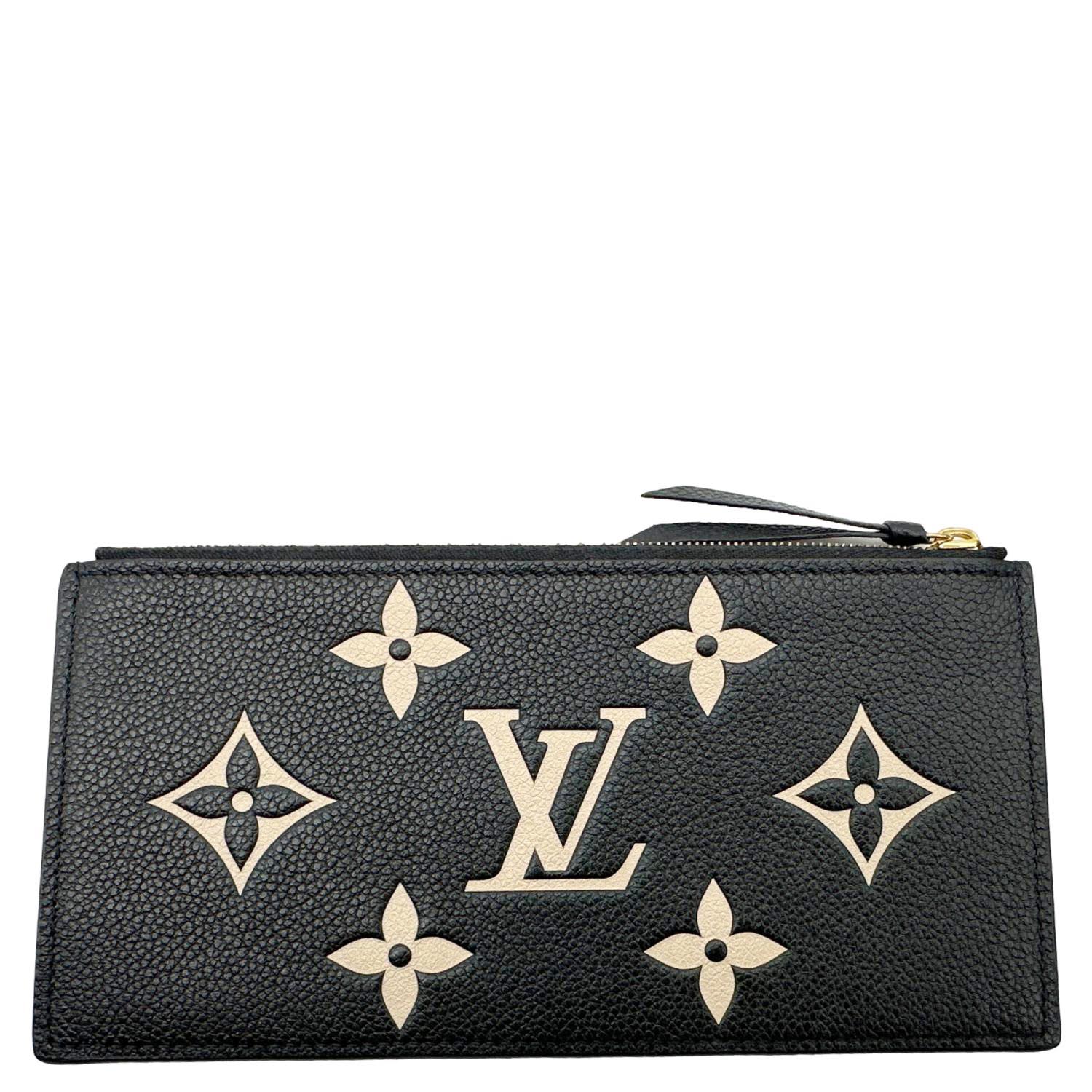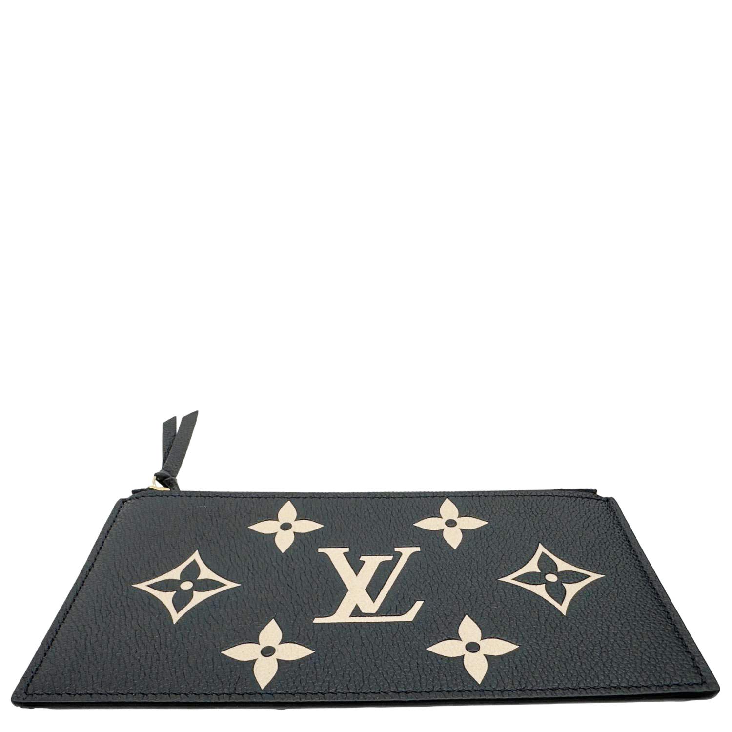 Louis Vuitton Félicie Monogram Giant Crafty Empreinte Leather Zip Insert Pouch in black and beige. Features bold oversized monogram detailing with a sleek bicolor design, perfect as a standalone pouch or wallet insert.