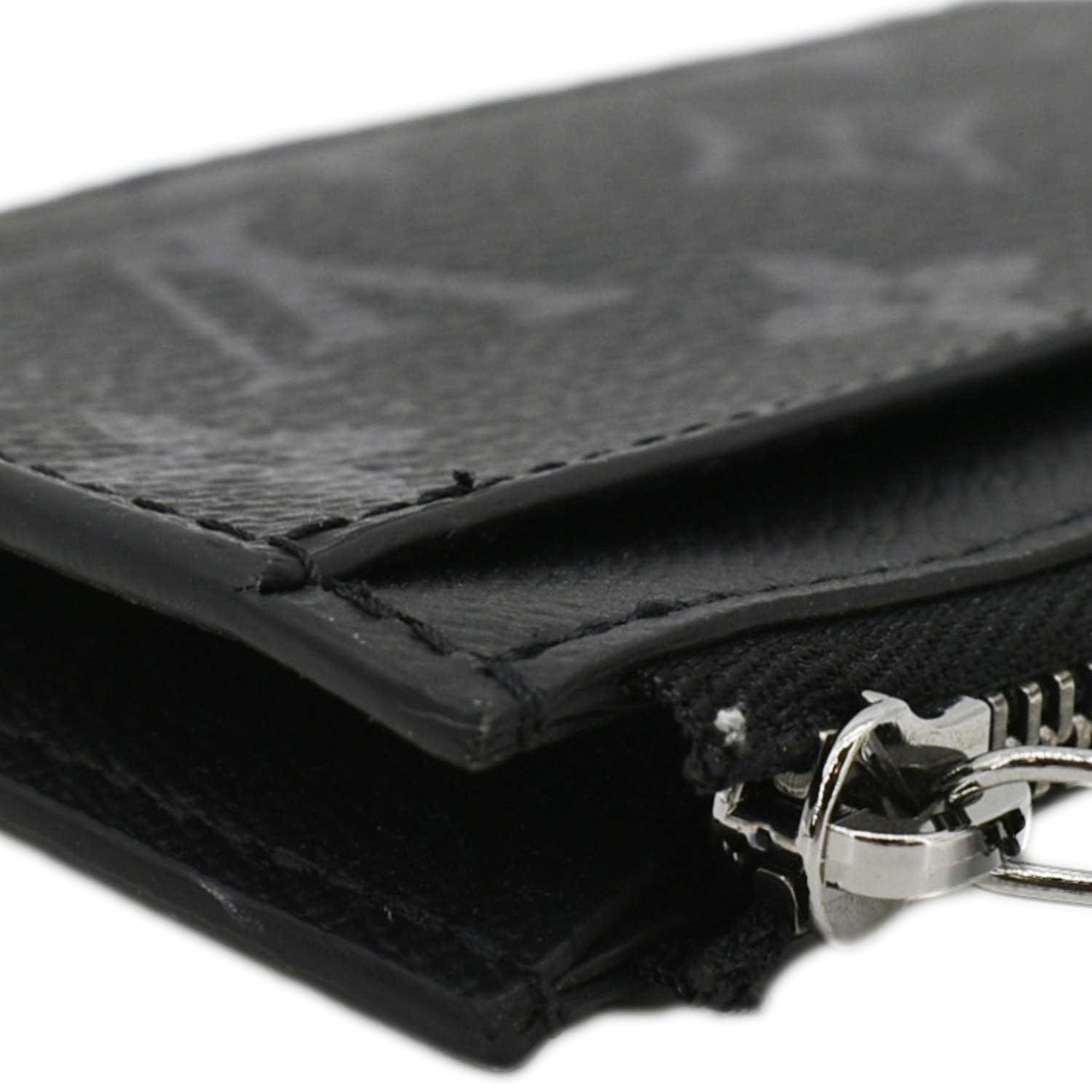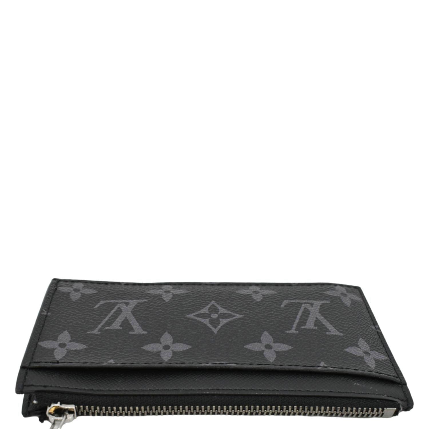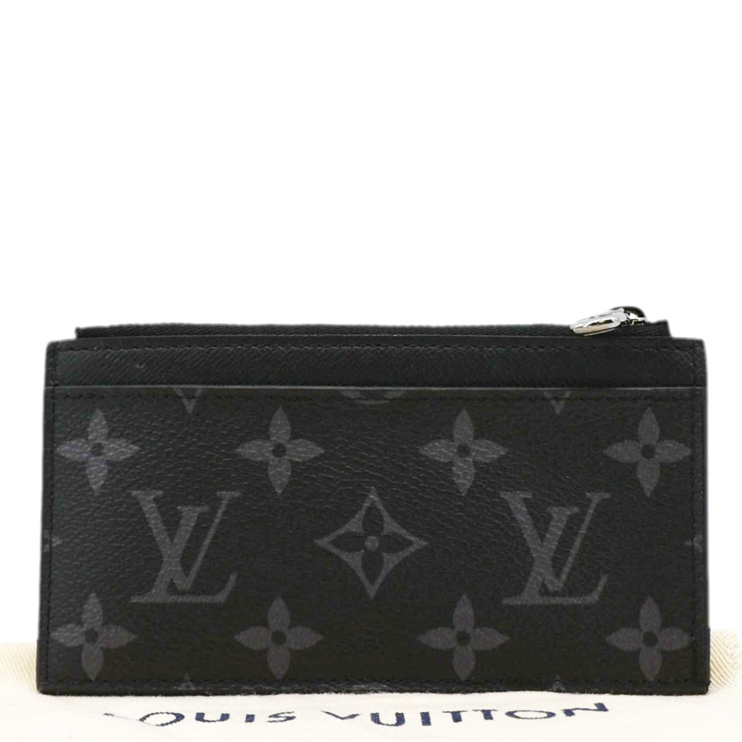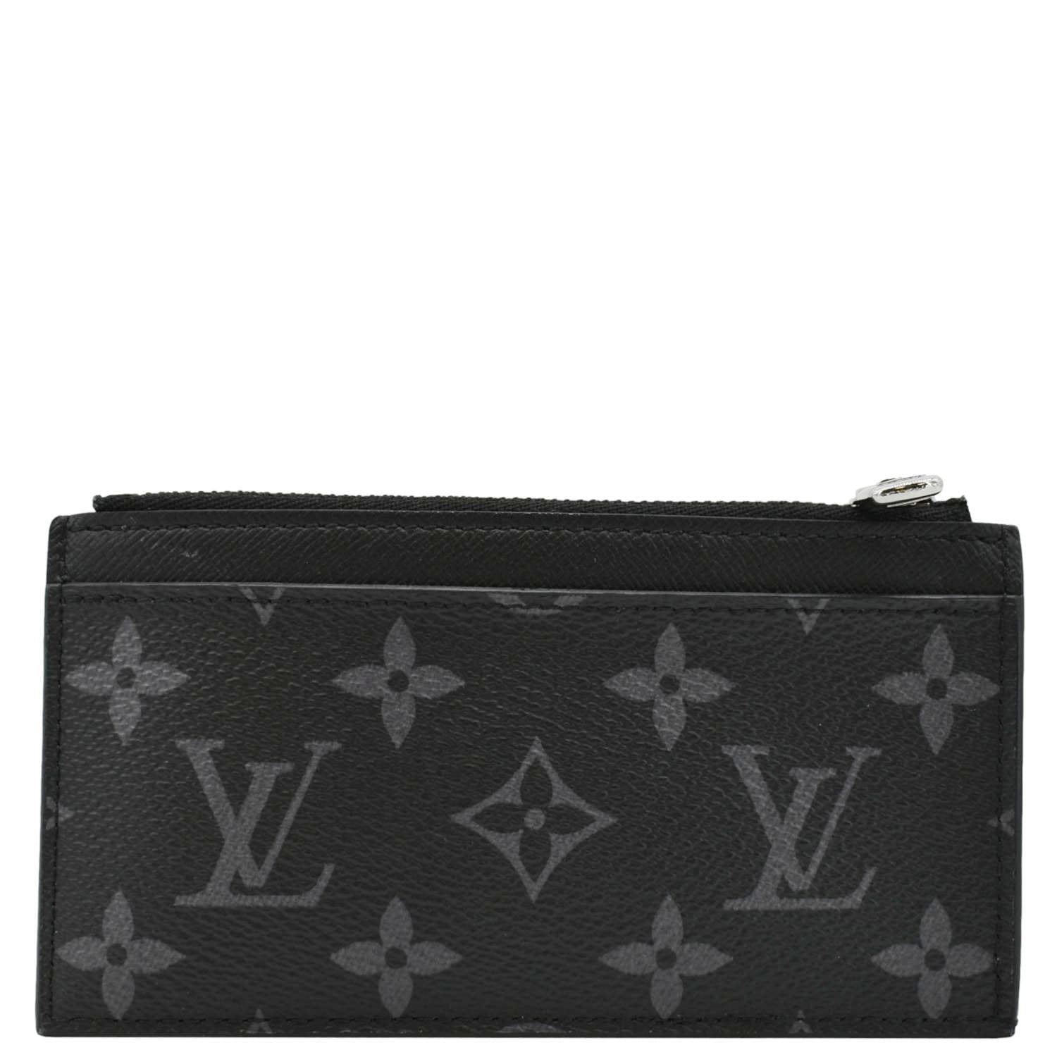 The Louis Vuitton Monogram Eclipse Canvas Coin Card Holder in black offers a sleek design and practicality, with multiple card slots and a secure zippered compartment. Crafted from luxurious Monogram Eclipse coated canvas, it combines timeless elegance with everyday convenience.