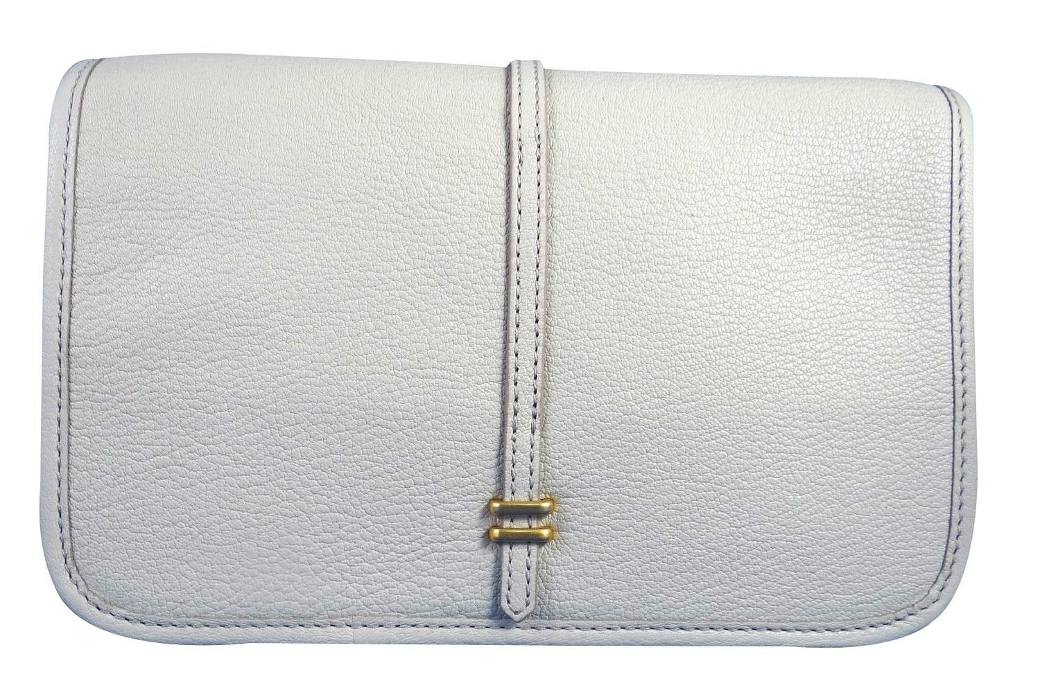 Front flap with Snap button closure with Leather and METAL square ring on flap