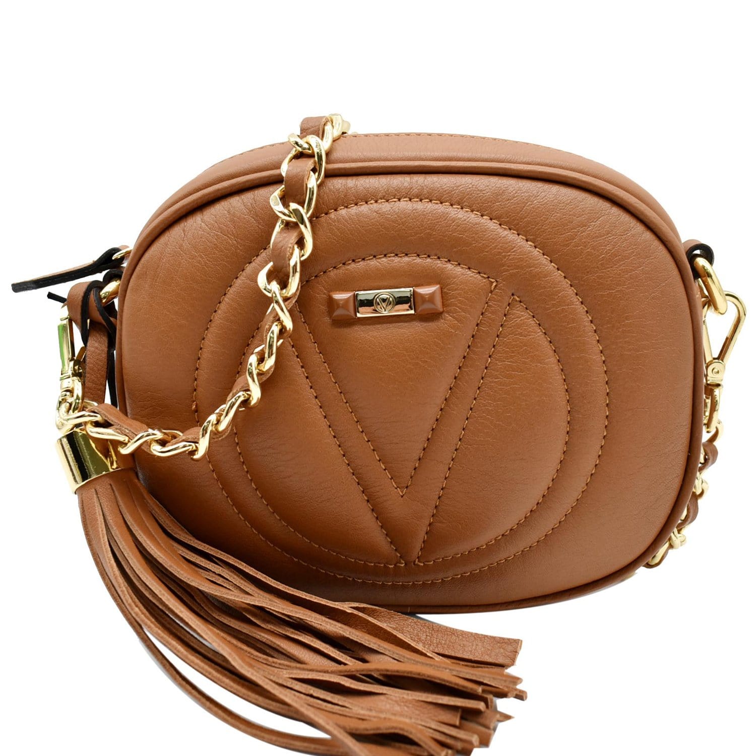 MARIO VALENTINO Mia Logo Leather Crossbody Bag Caramel