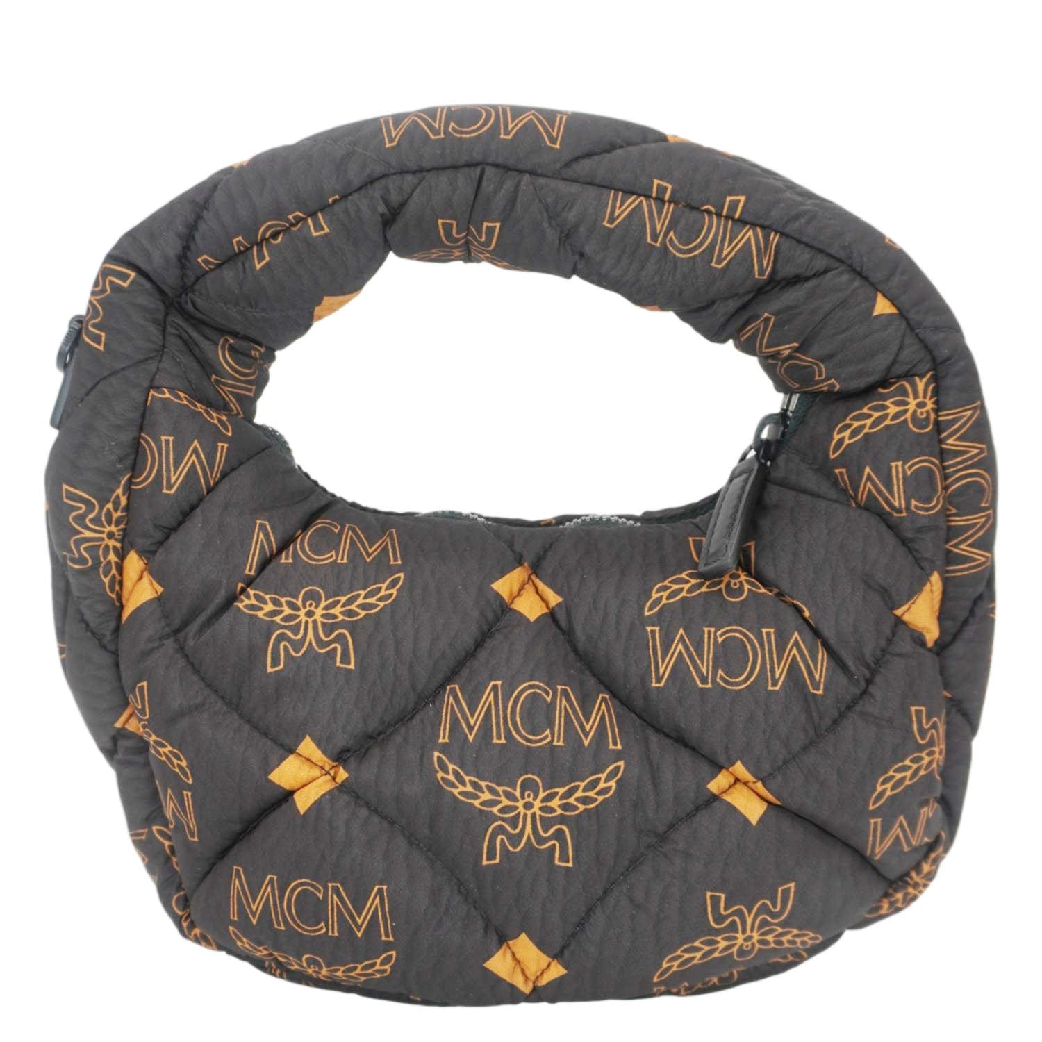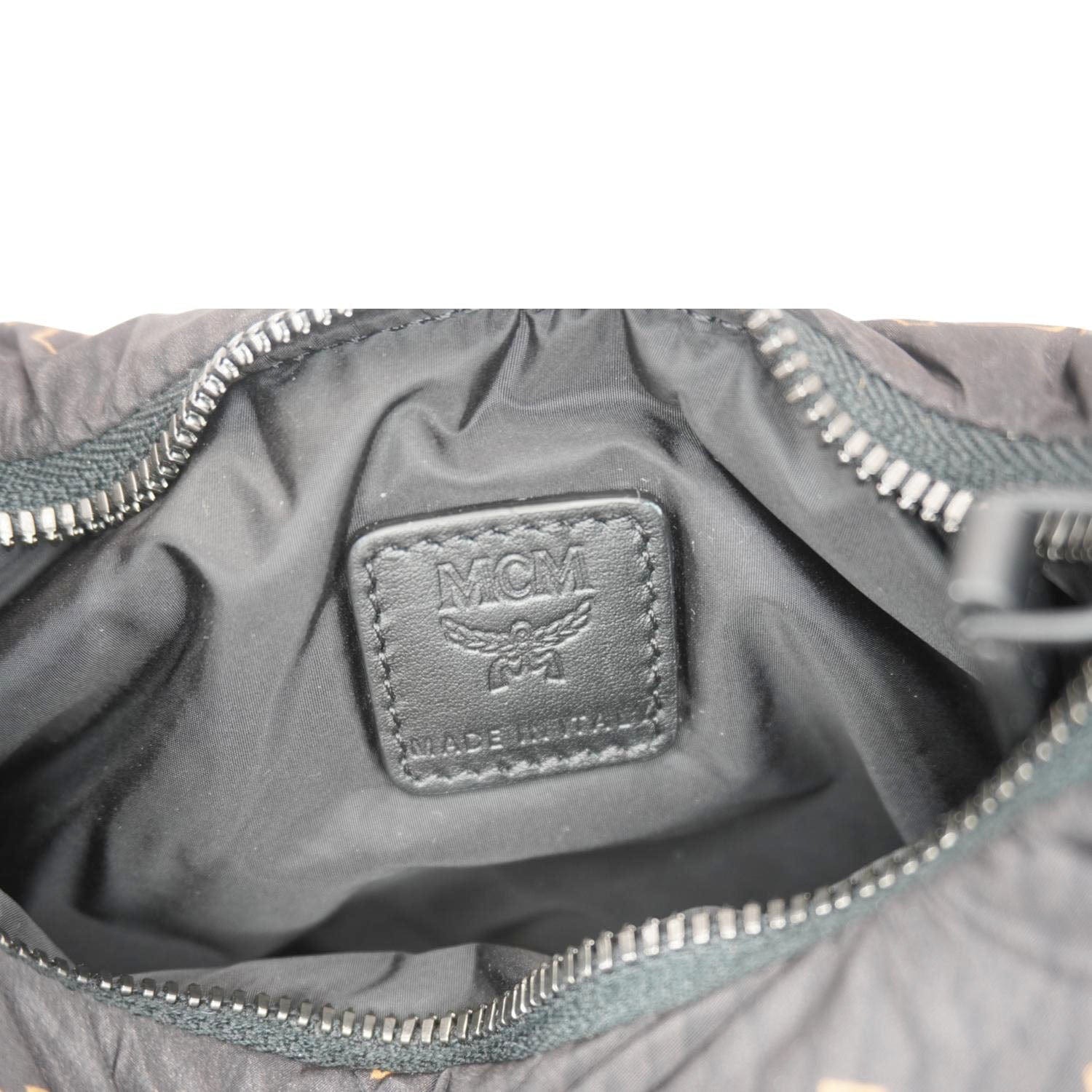 The MCM Aren Padded Nylon Hobo Bag in black is a chic and contemporary accessory. Featuring a soft, padded nylon exterior, adjustable shoulder strap, and spacious interior, it combines comfort and style for everyday use.