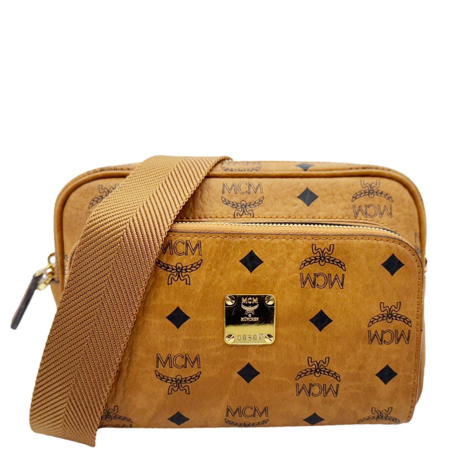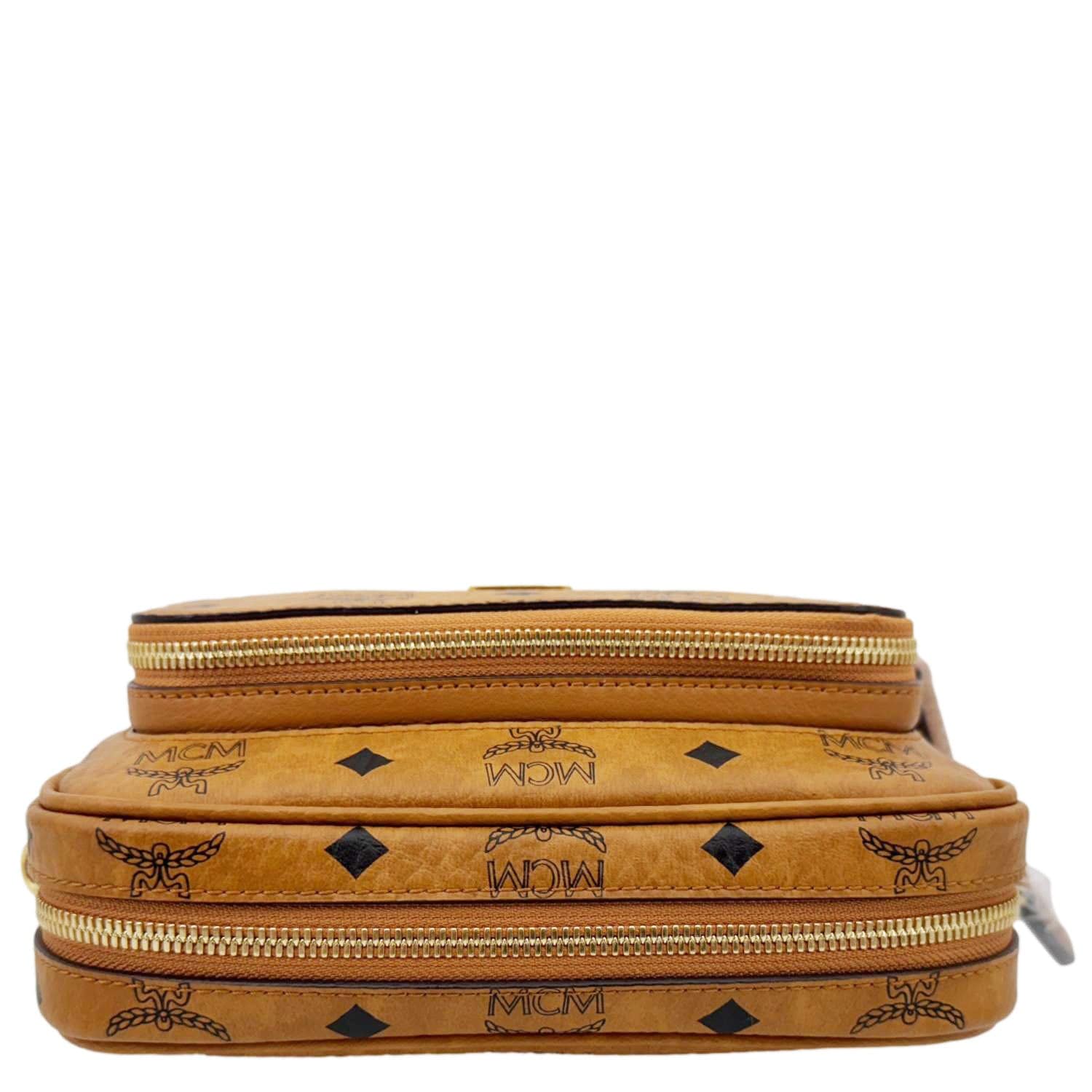 MCM Aren Small Classic Visetos Canvas Crossbody Bag Cognac
