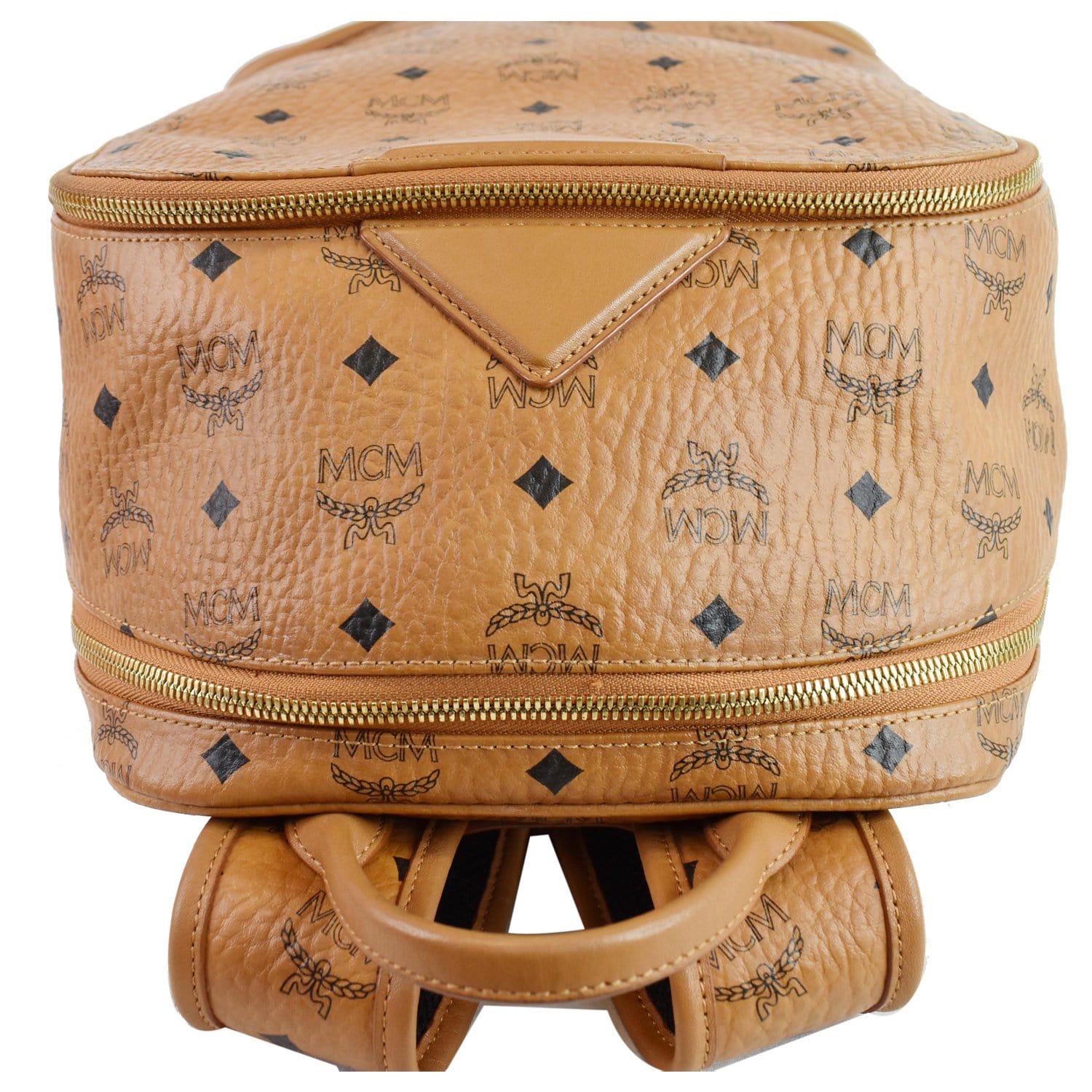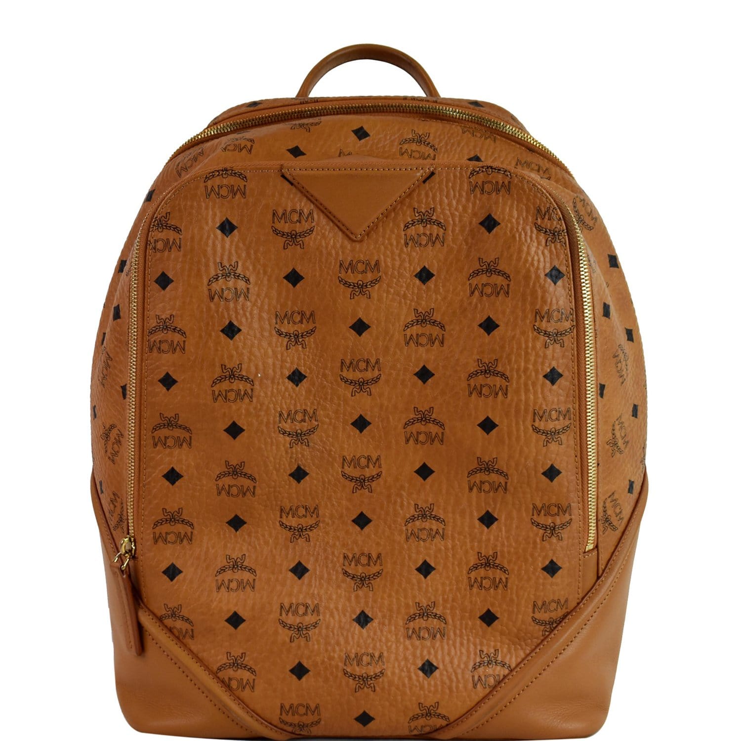MCM Duke Visetos Medium Canvas Leather Backpack Cognac
