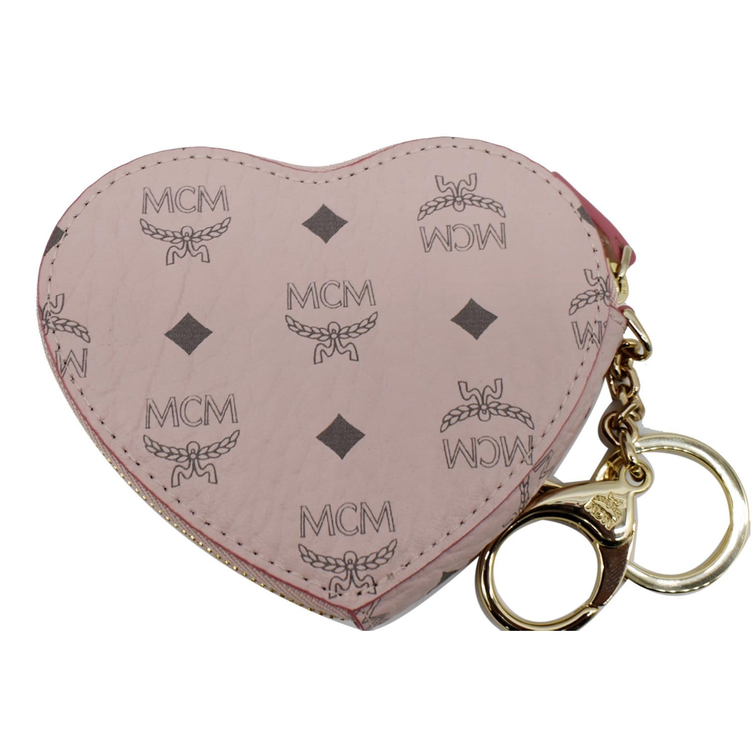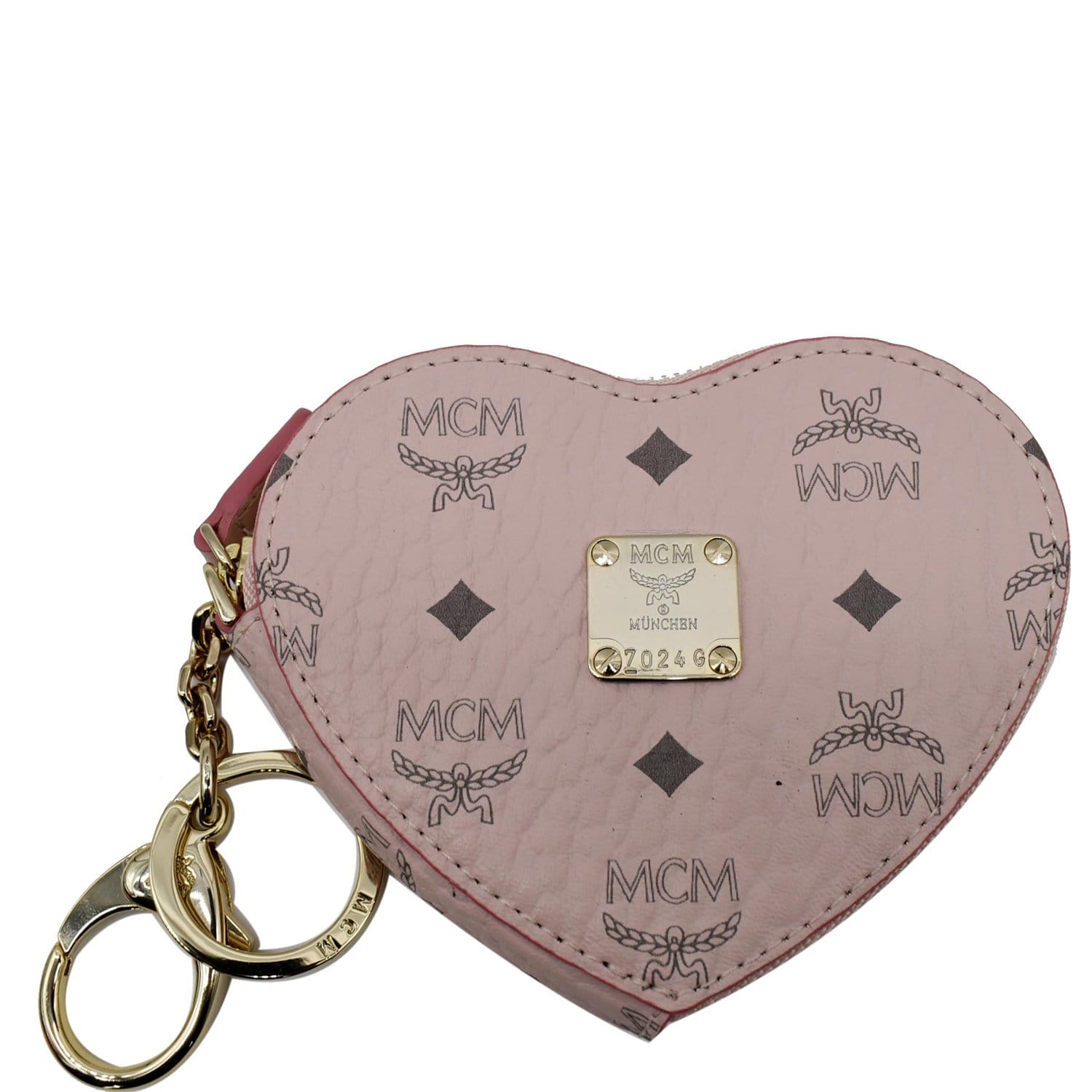 MCM Heart Coin Visetos Charm Monogram Canvas Pouch Pink