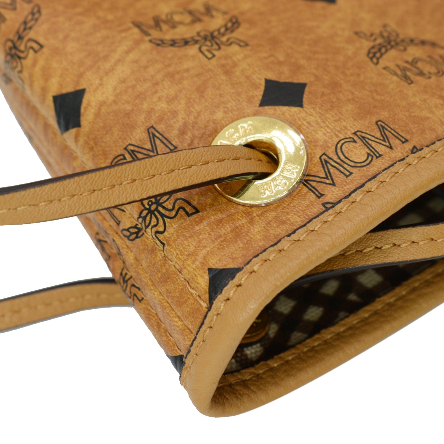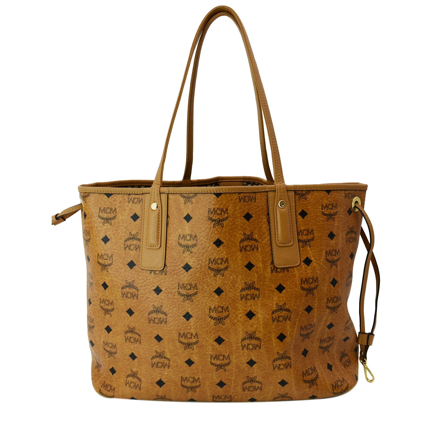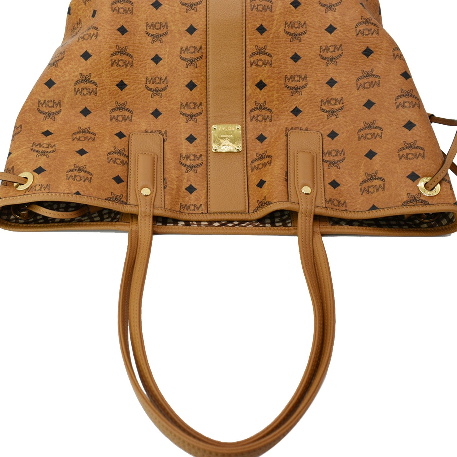 MCM Reversible Liz Medium Visetos Canvas Shopper Tote Bag Cognac