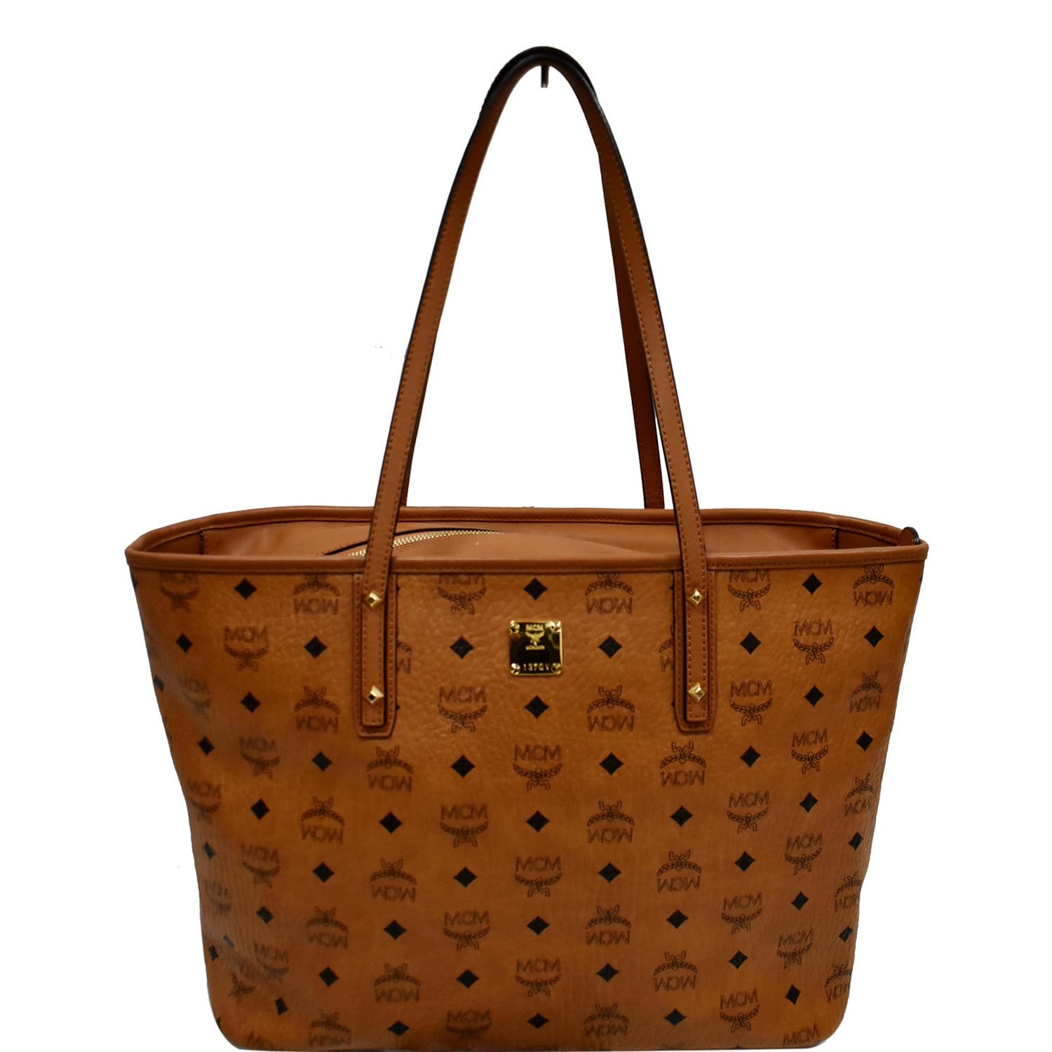 MCM Medium Anya Top Zip Visetos Canvas Shopper Tote Bag Cognac
