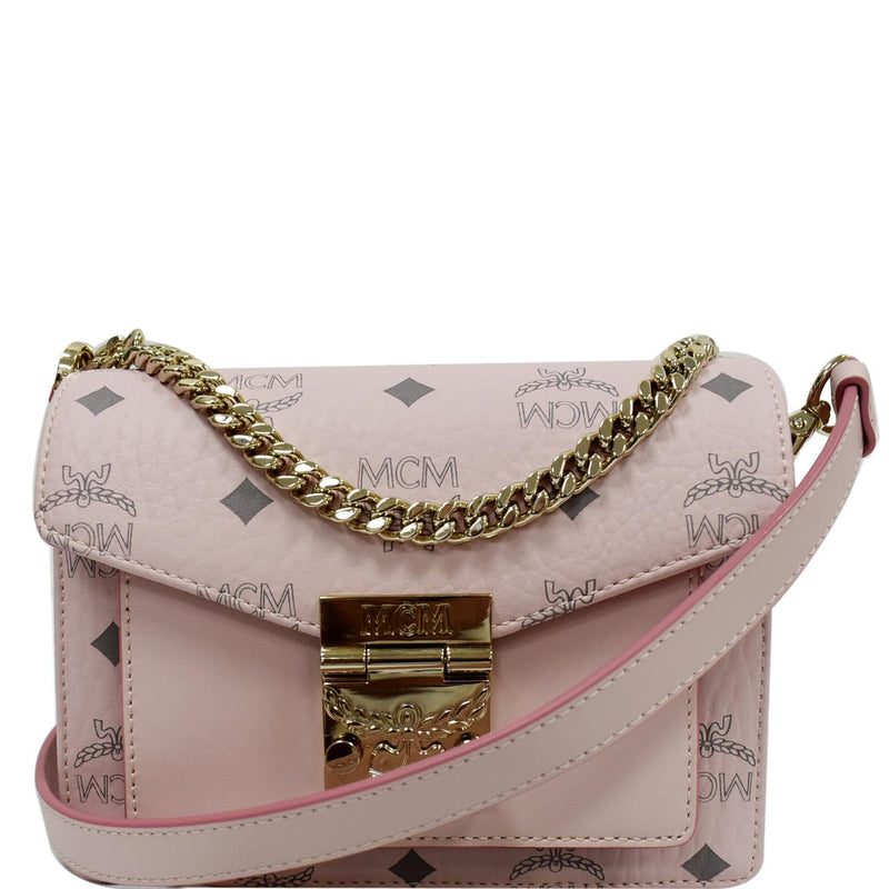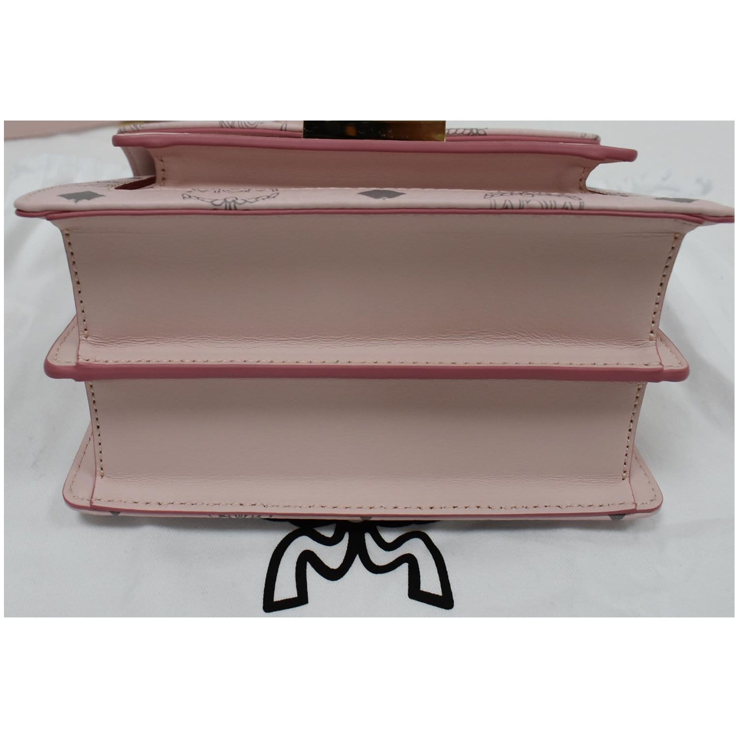 MCM Mini Patricia Visetos Leather Crossbody Bag Powder Pink