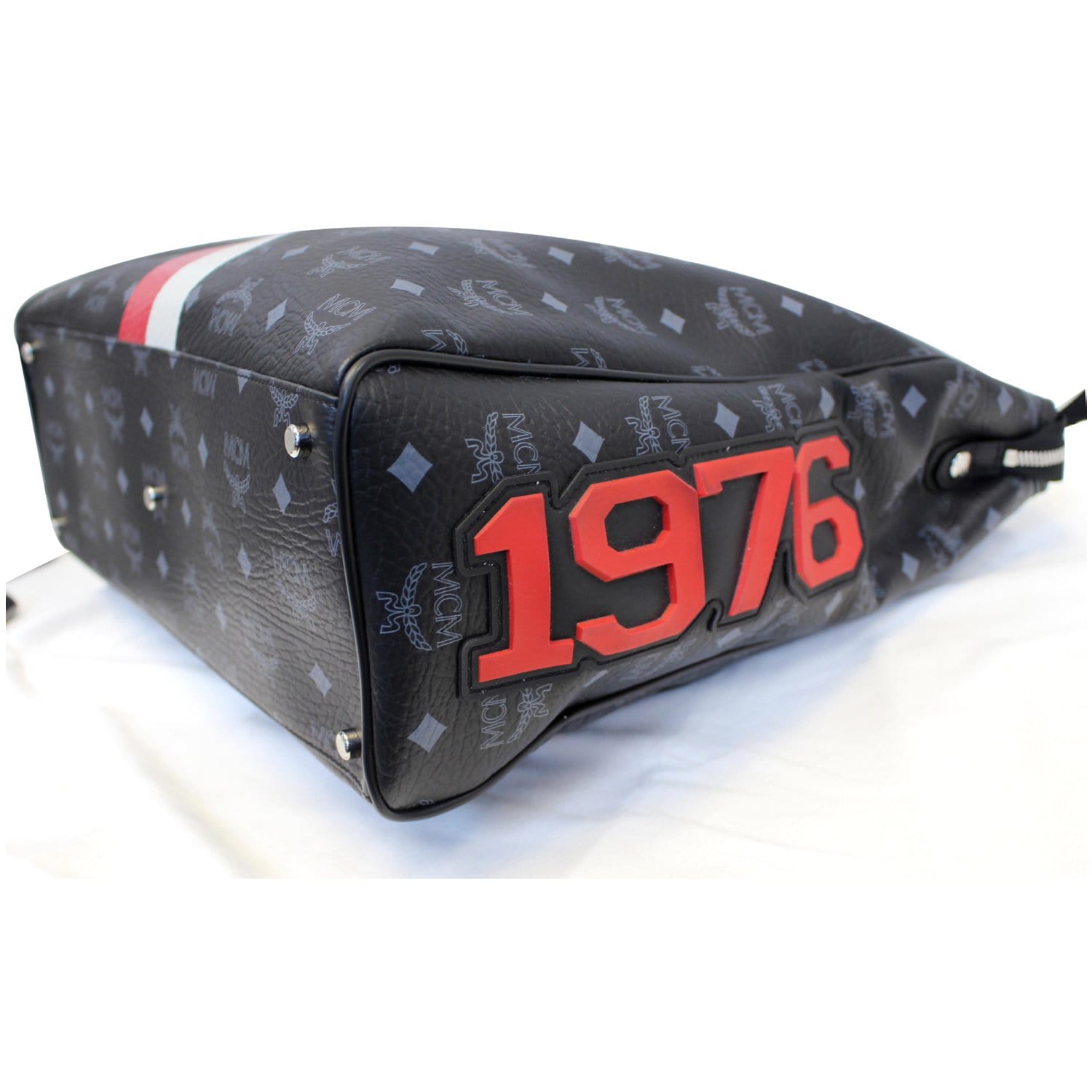 MCM Princess Lion Visetos Satchel Crossbody Bag Black